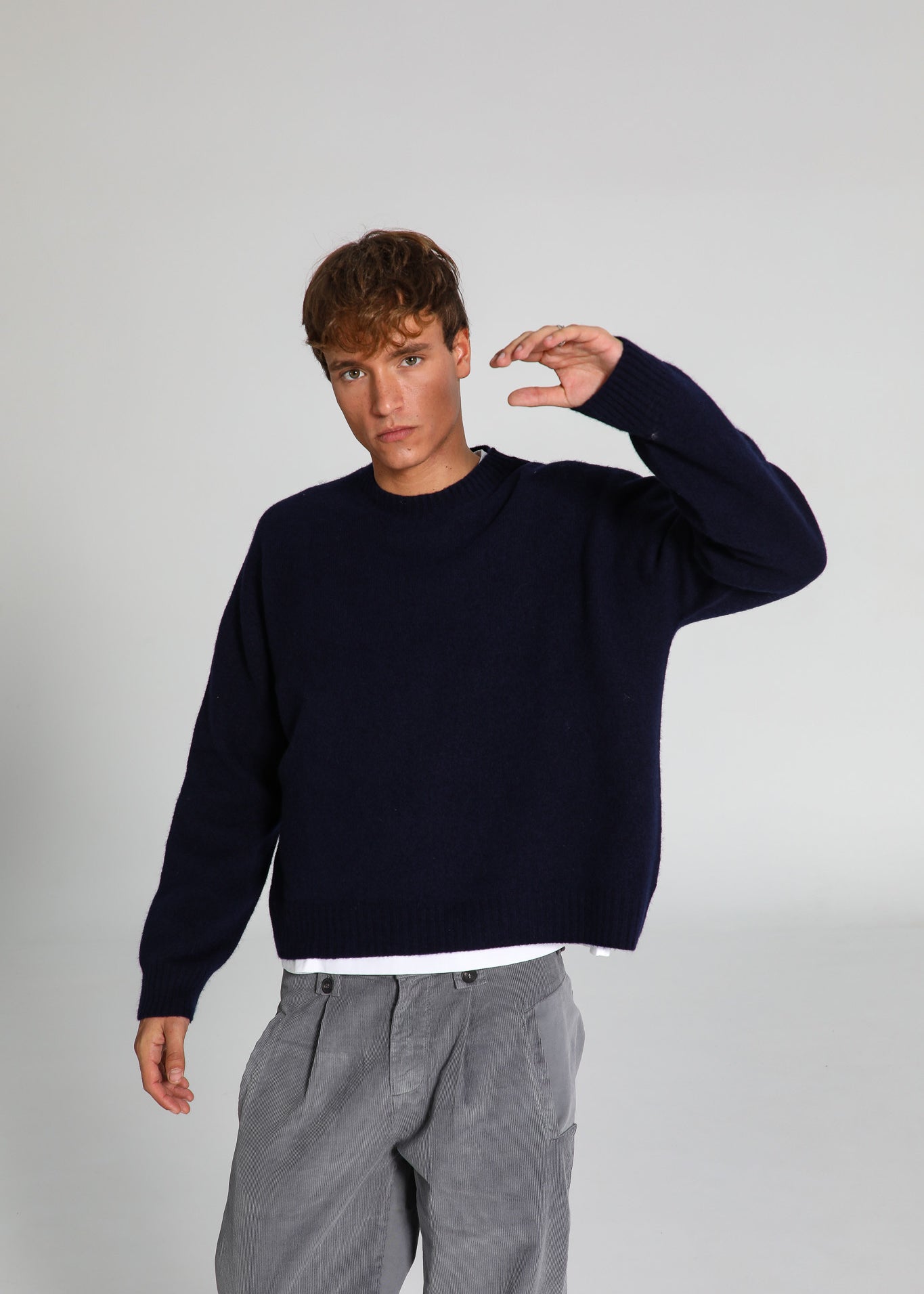 Round Knit Sweater Navy