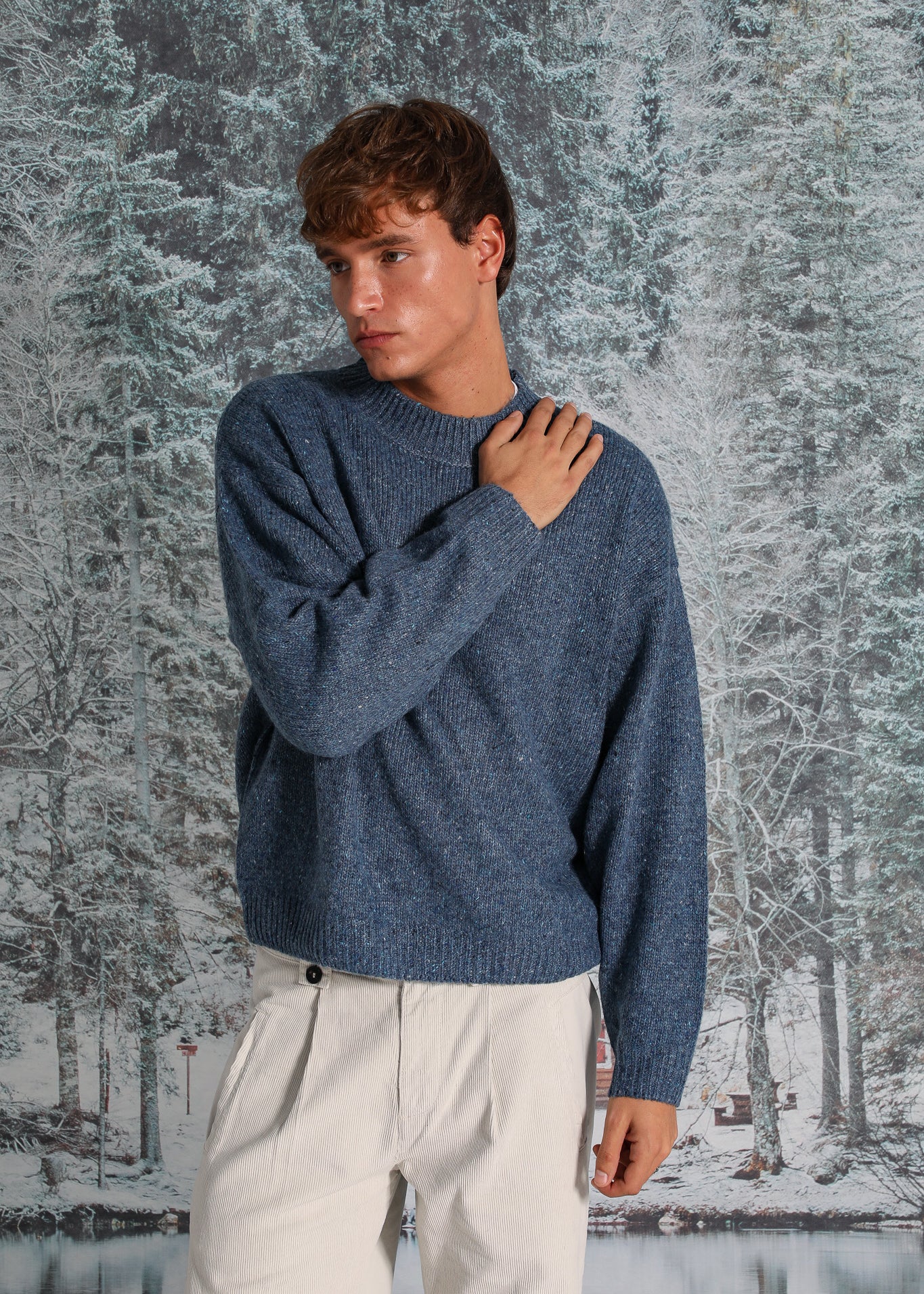 Round Knit Sweater Mottled Blue