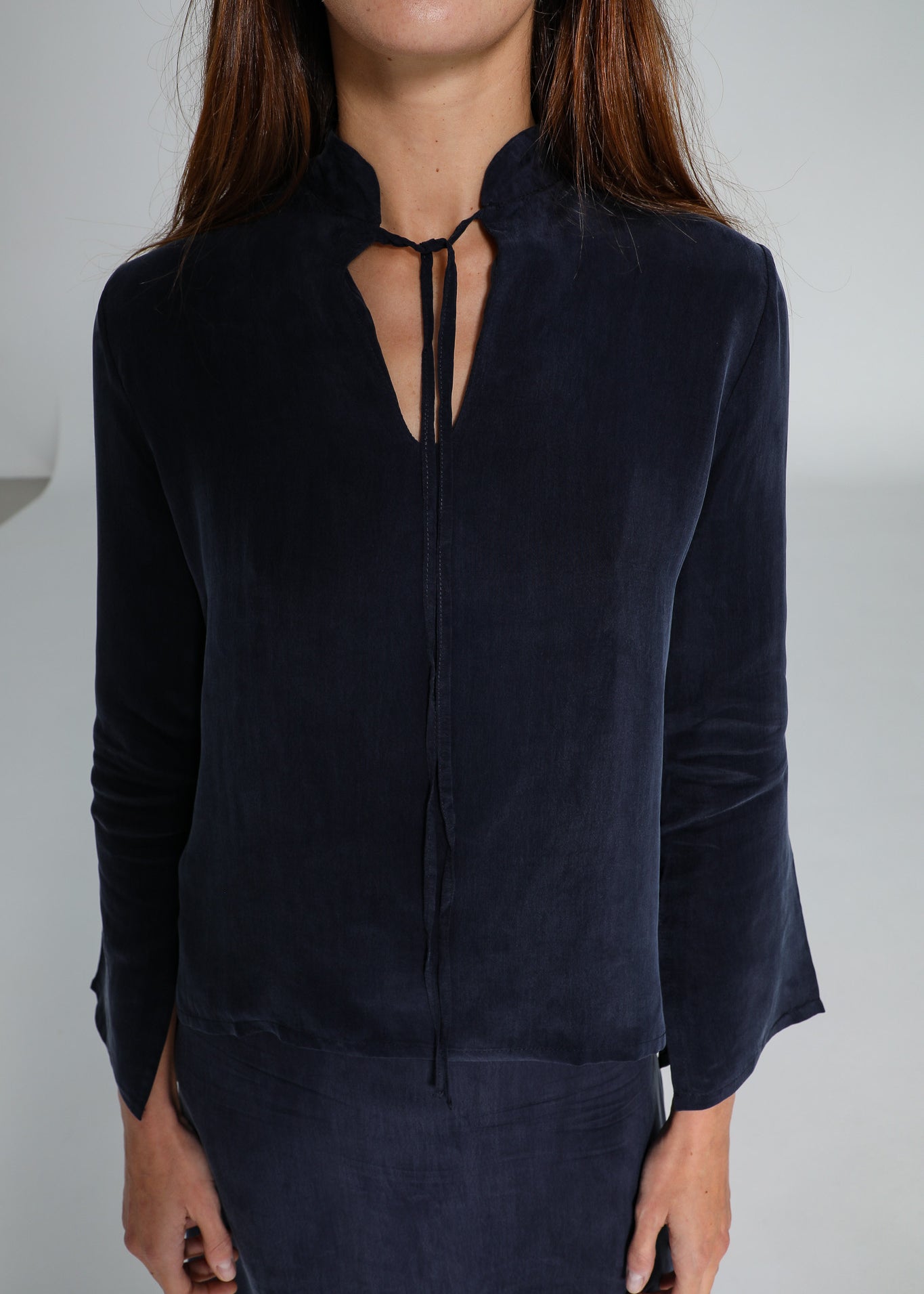 Lace Cupro Blouse Navy