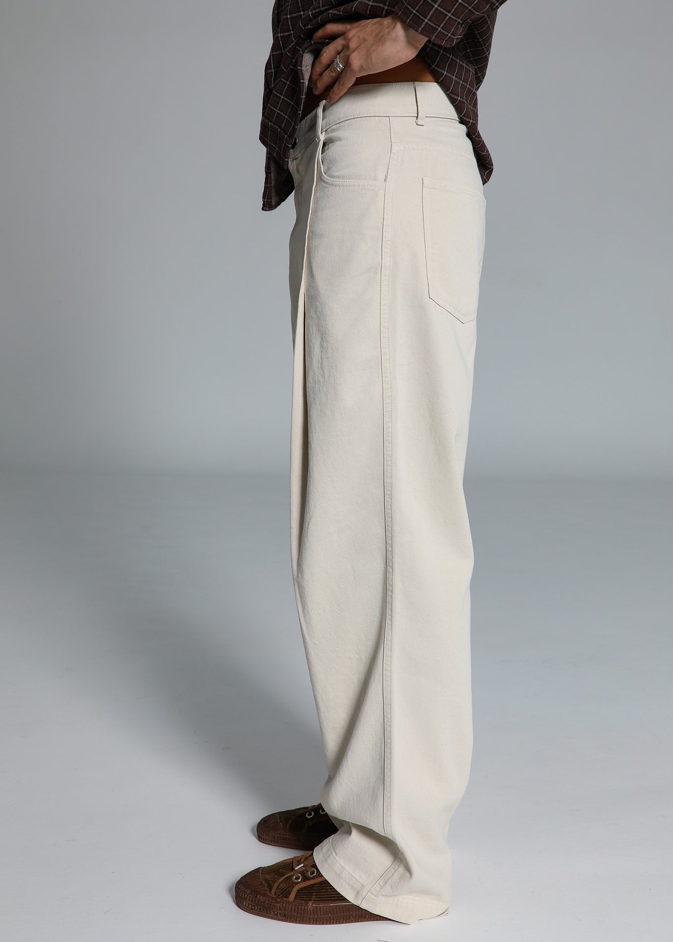 Wide Denim Seams Pants Beige