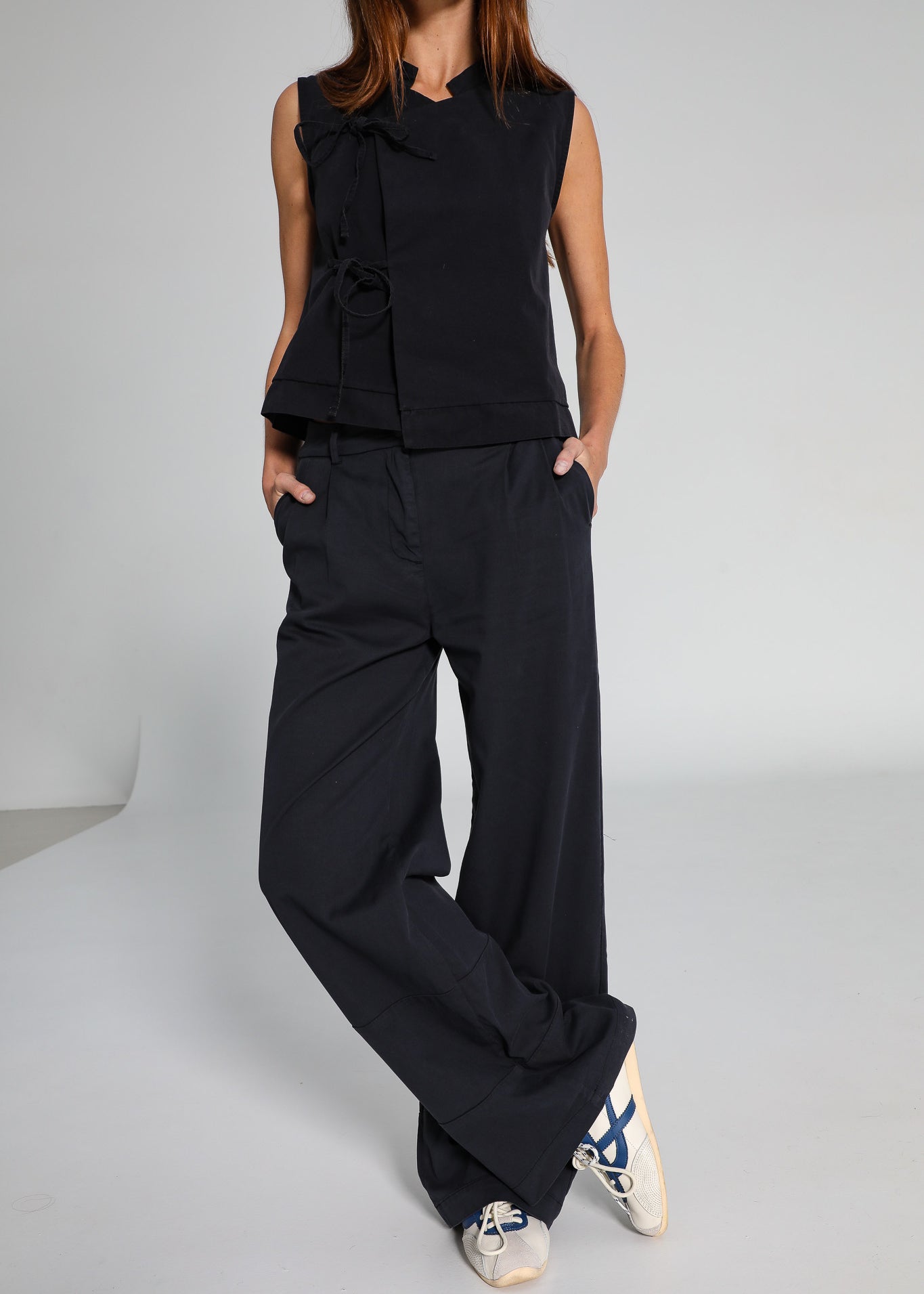 Crossed Pleated Pants Dark Grey