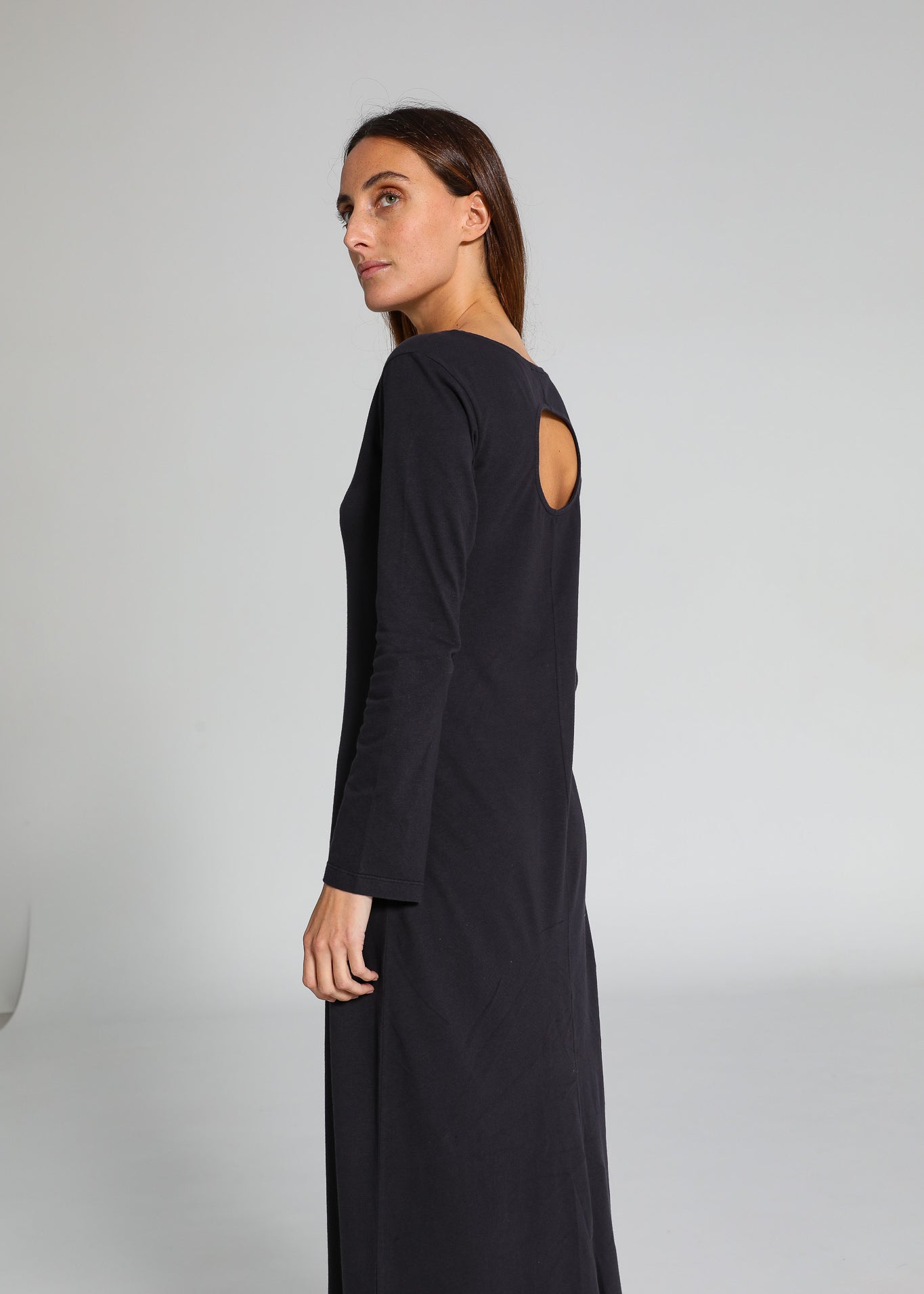 Back Hole Long Dress Dark Blue