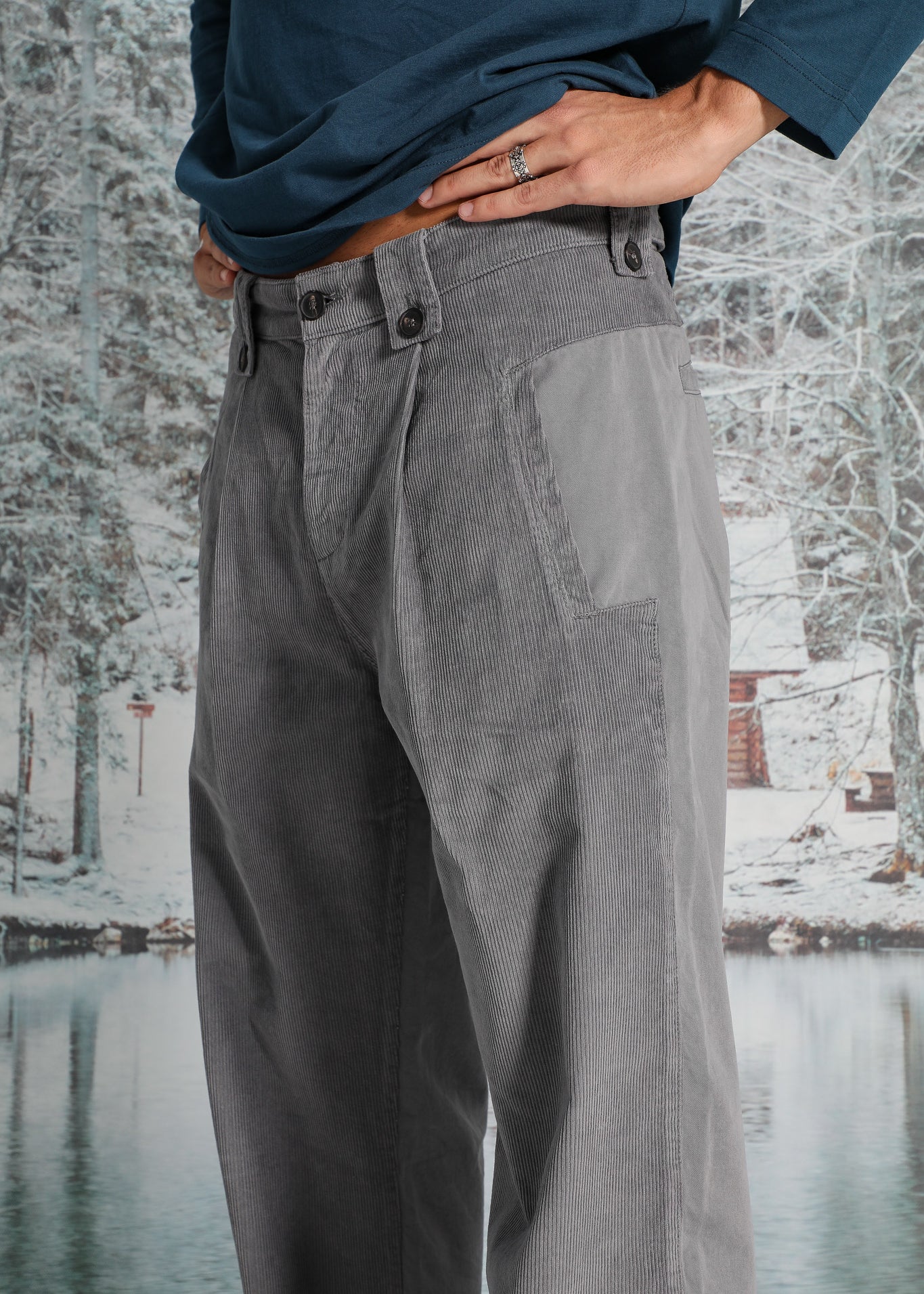 Corduroy Pocket Comfy Pants Grey