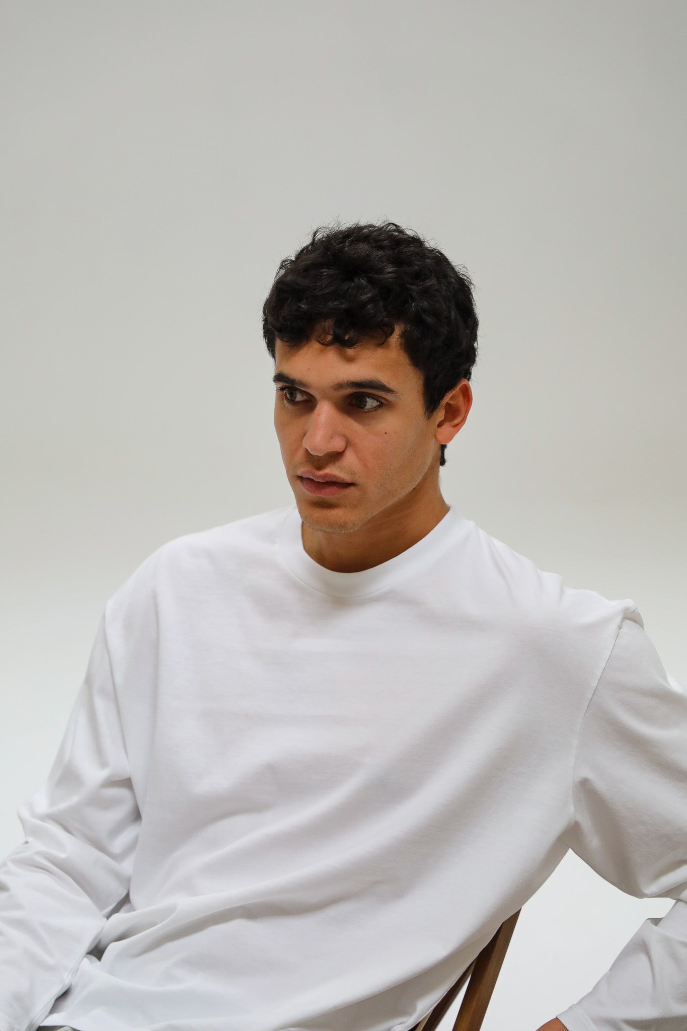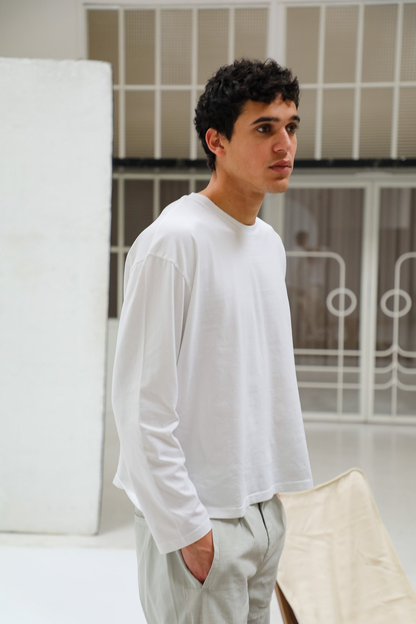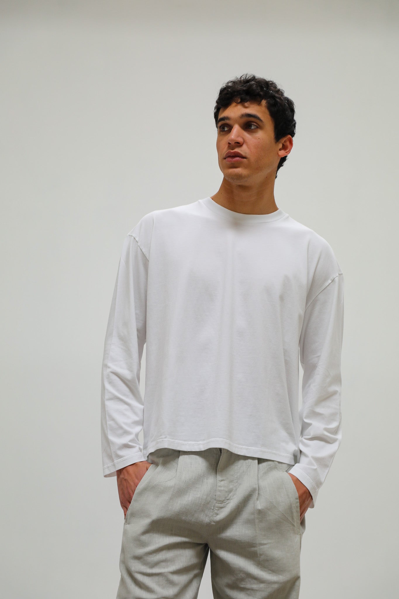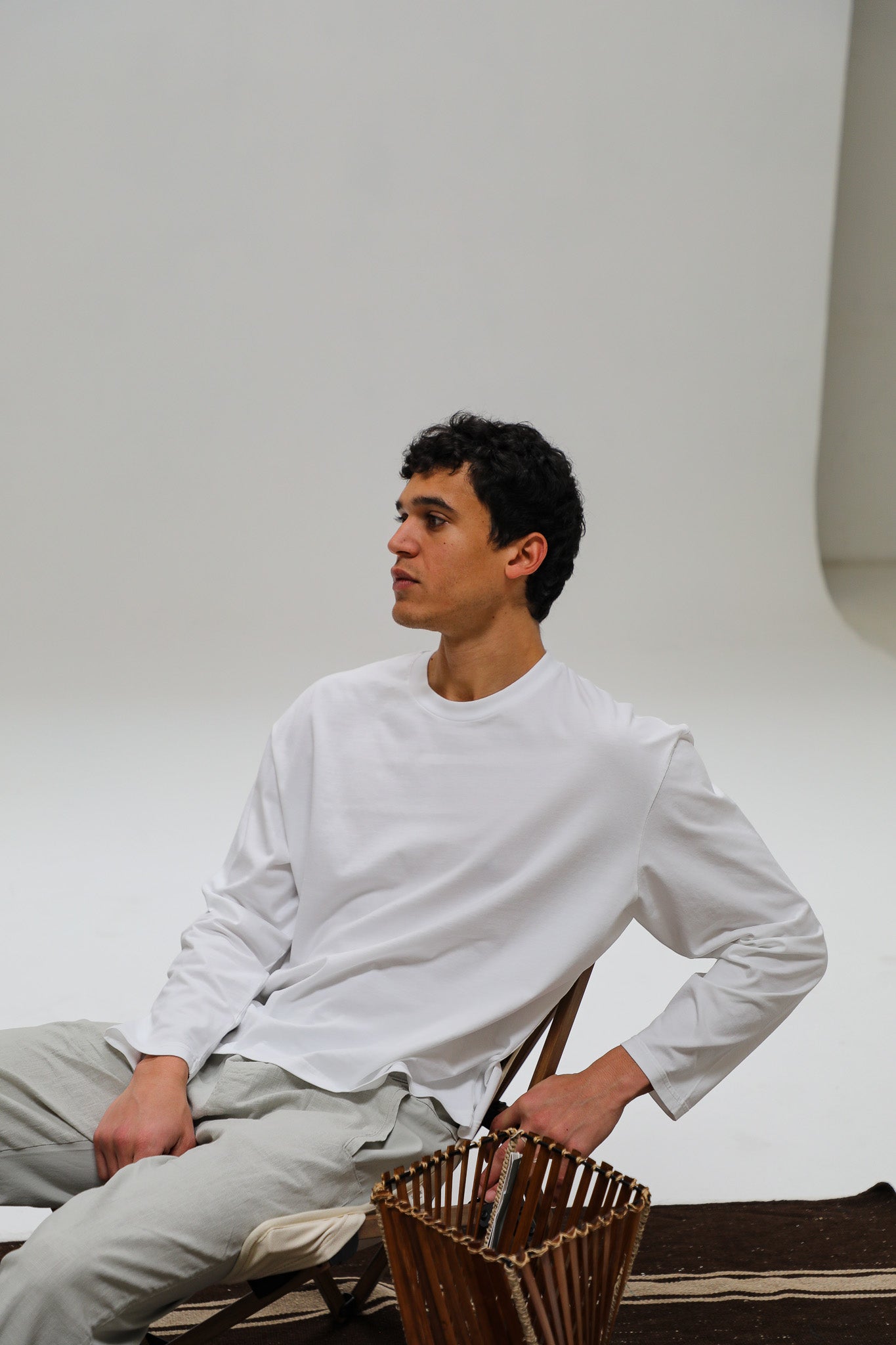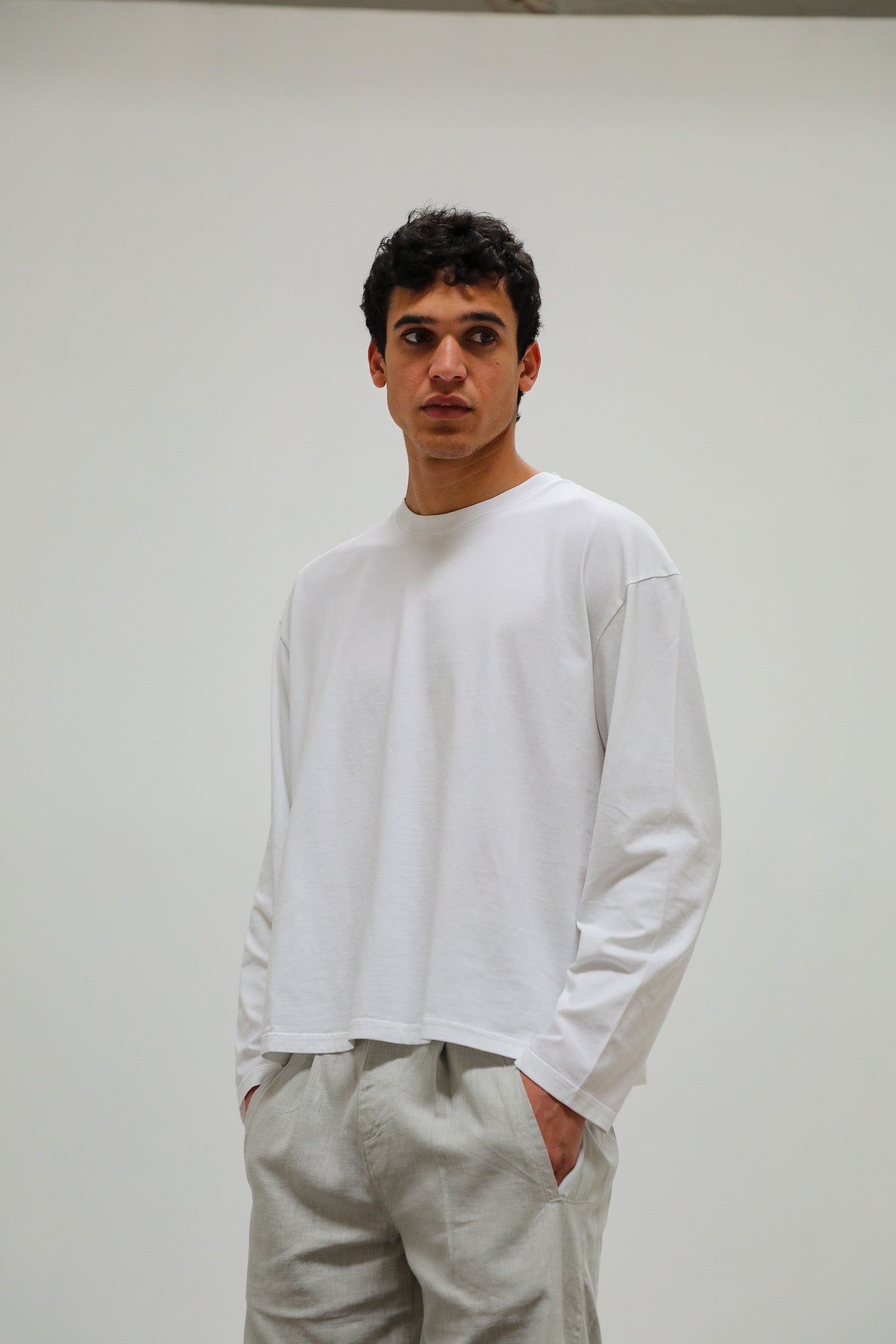 Natural long-sleeve t-shirt, featuring a vintage-inspired design and a stylish washed finish.