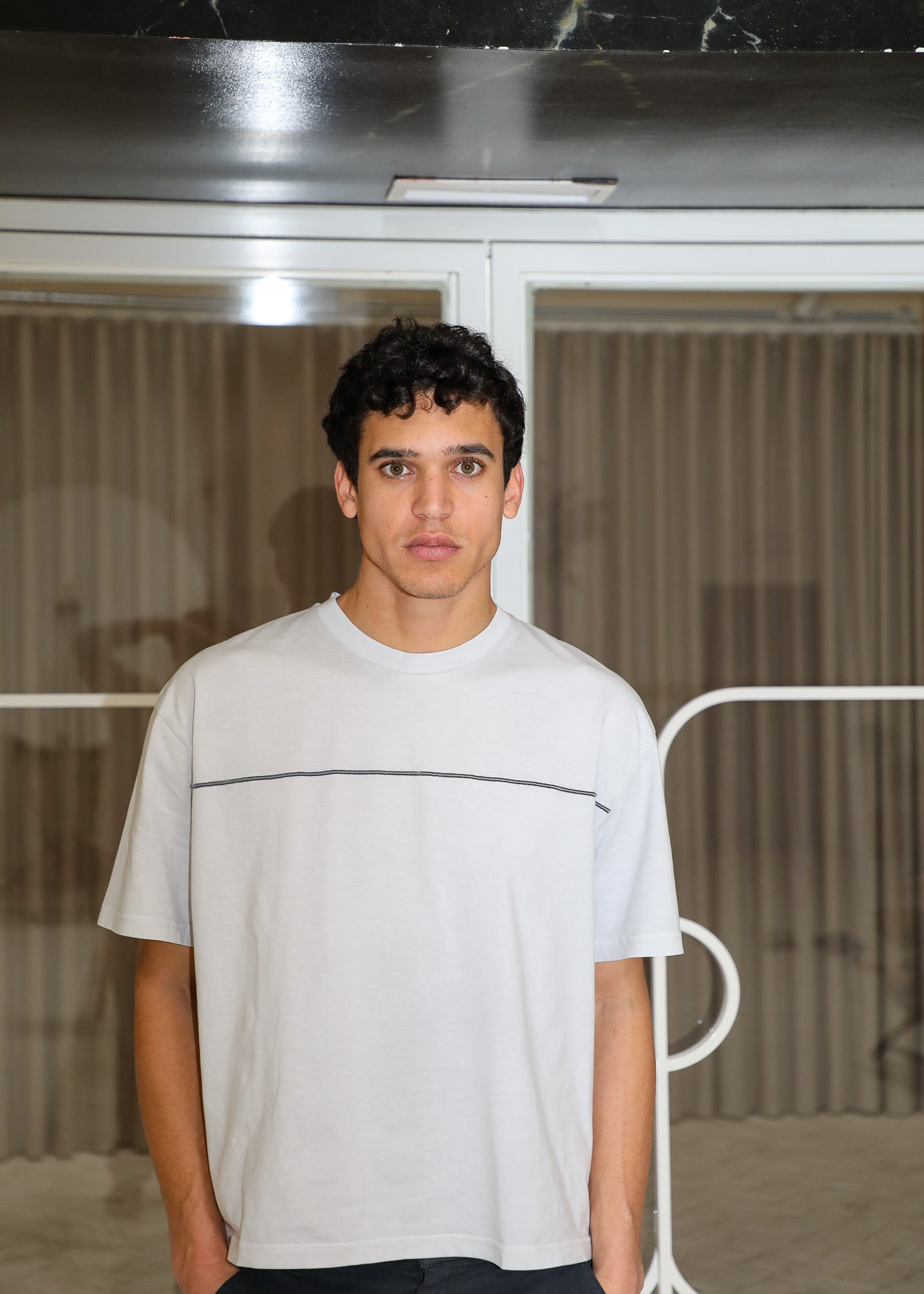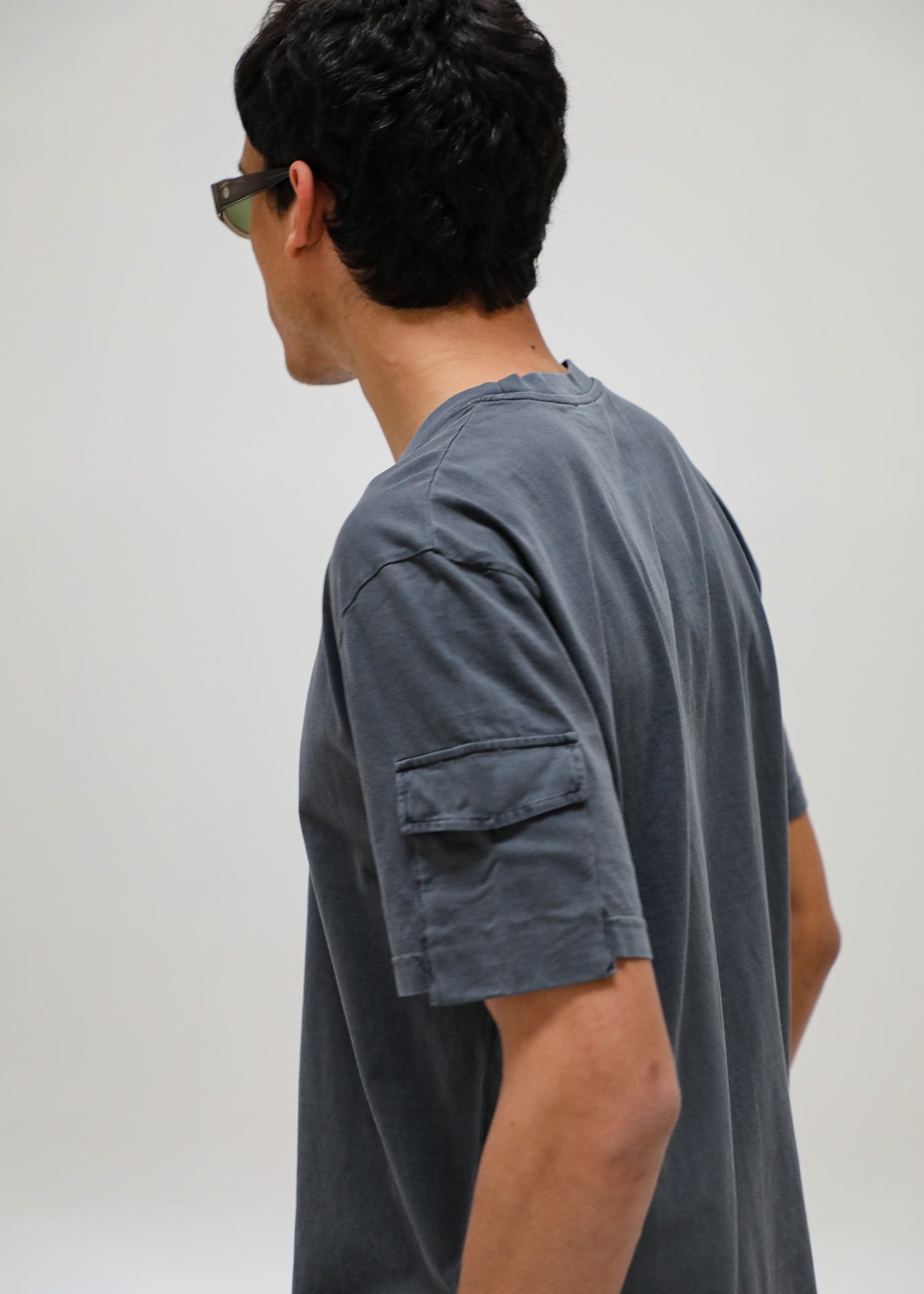 Long Trendy Side Pocket T-Shirt Detail Light Grey