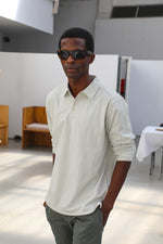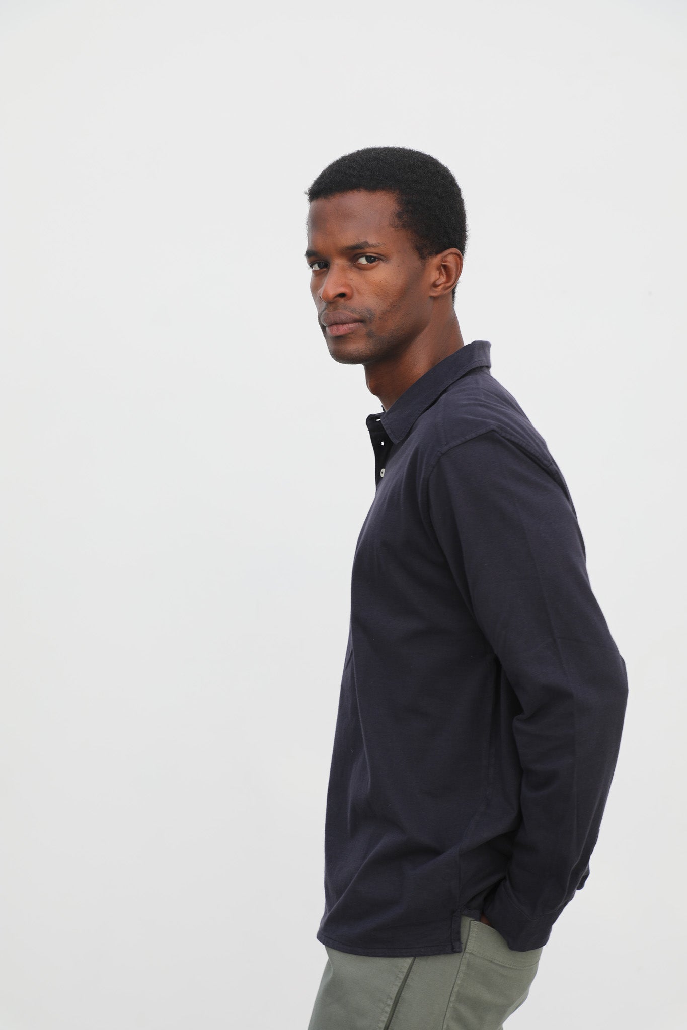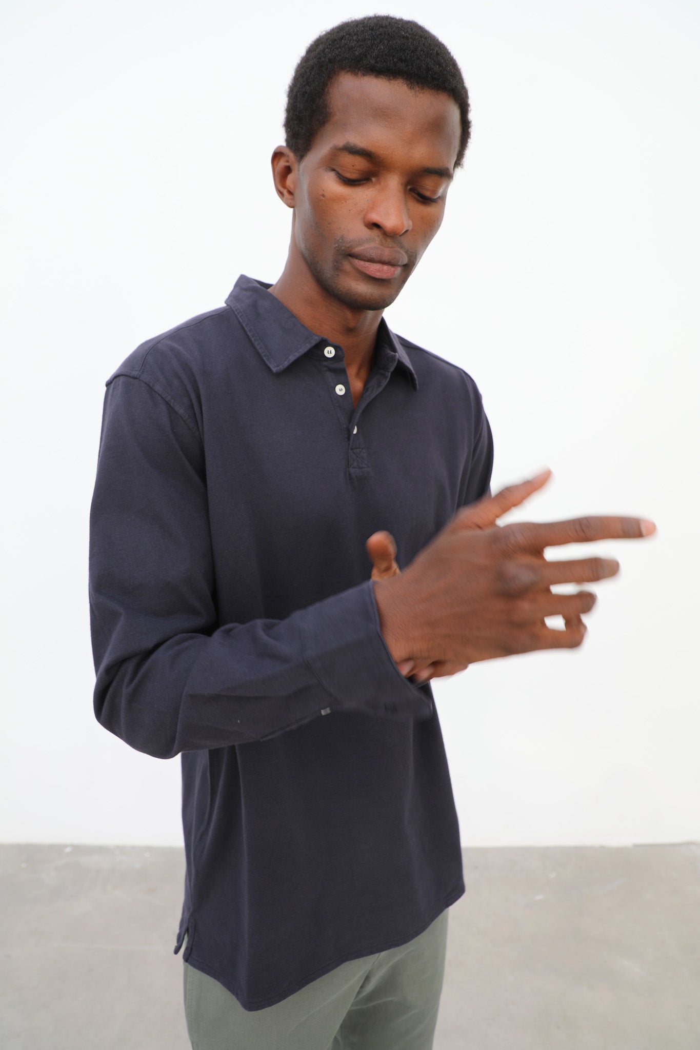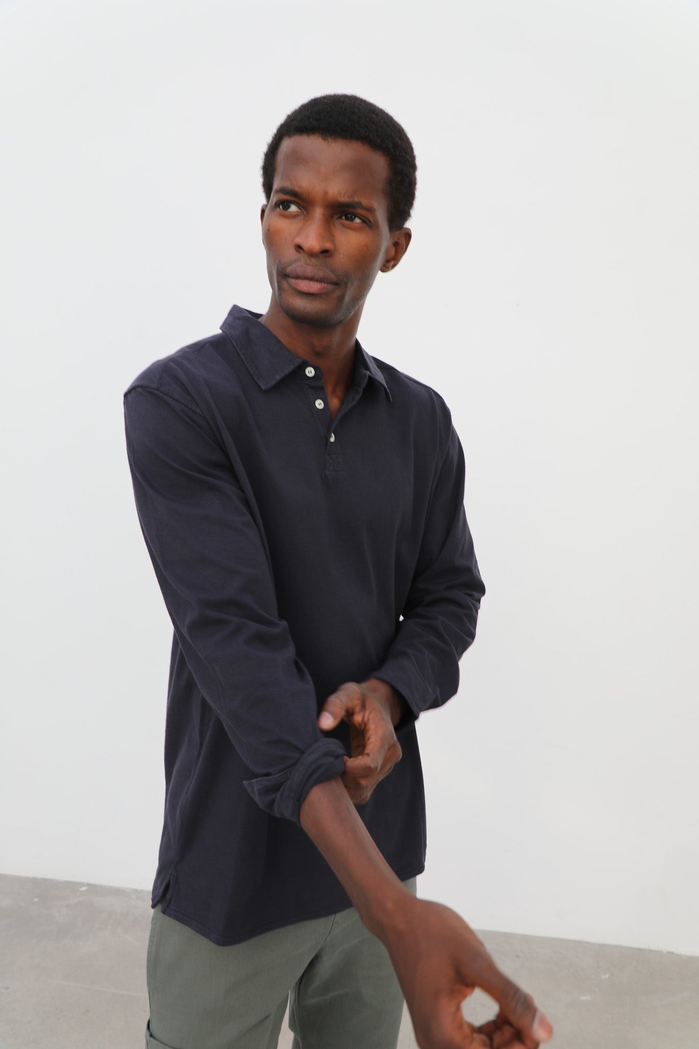 Dark navy soft long sleeve polo with buttons, made from 100% organic cotton for comfort and breathability. The buttoned design offers a timeless and versatile style, suitable for both casual and smart-casual occasions.