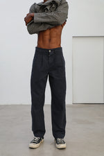Wide pants with darts, button at the waist and detail on the back in taupe.