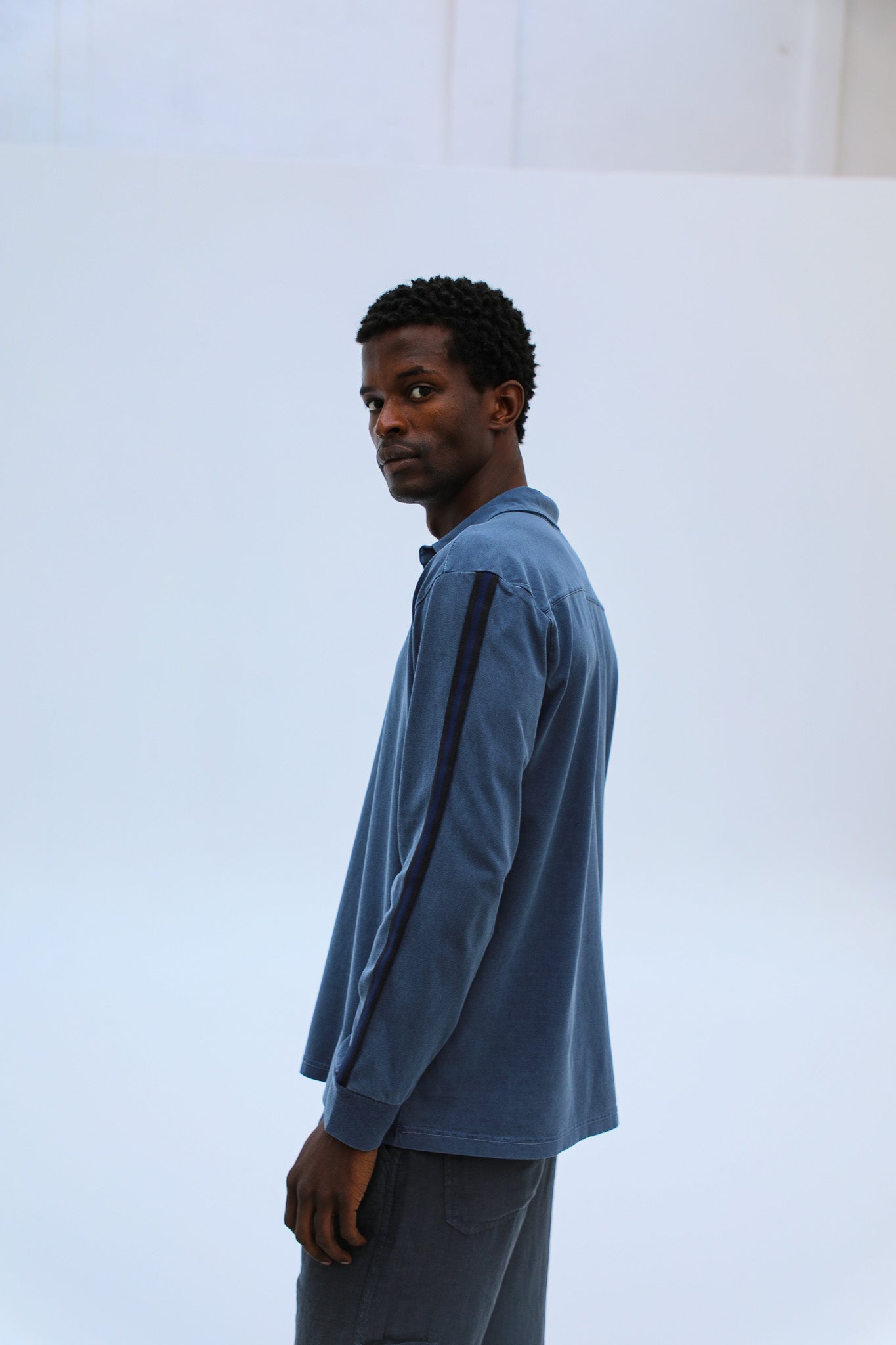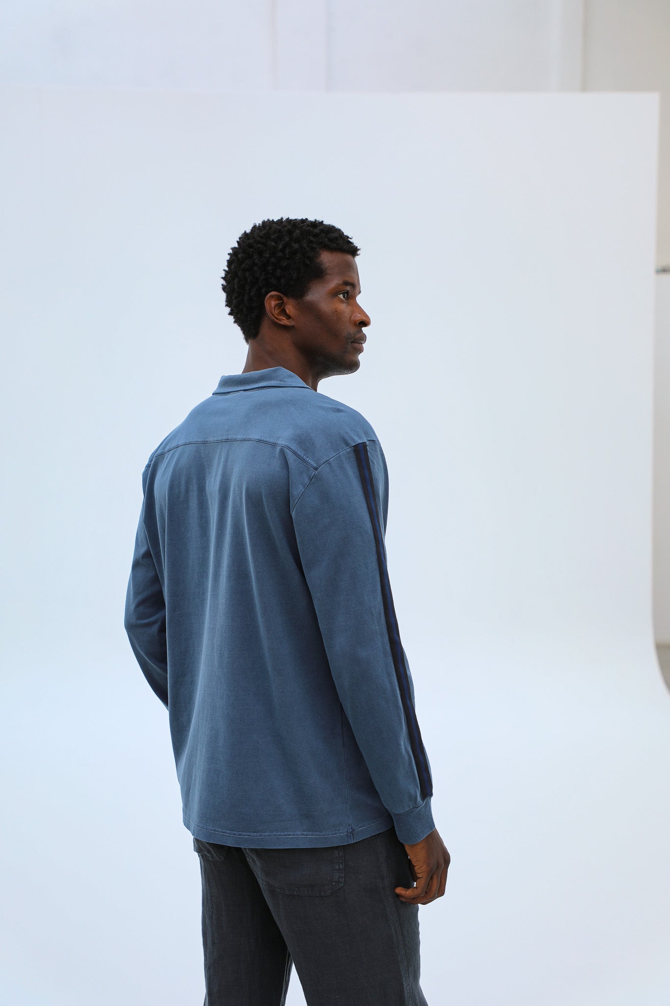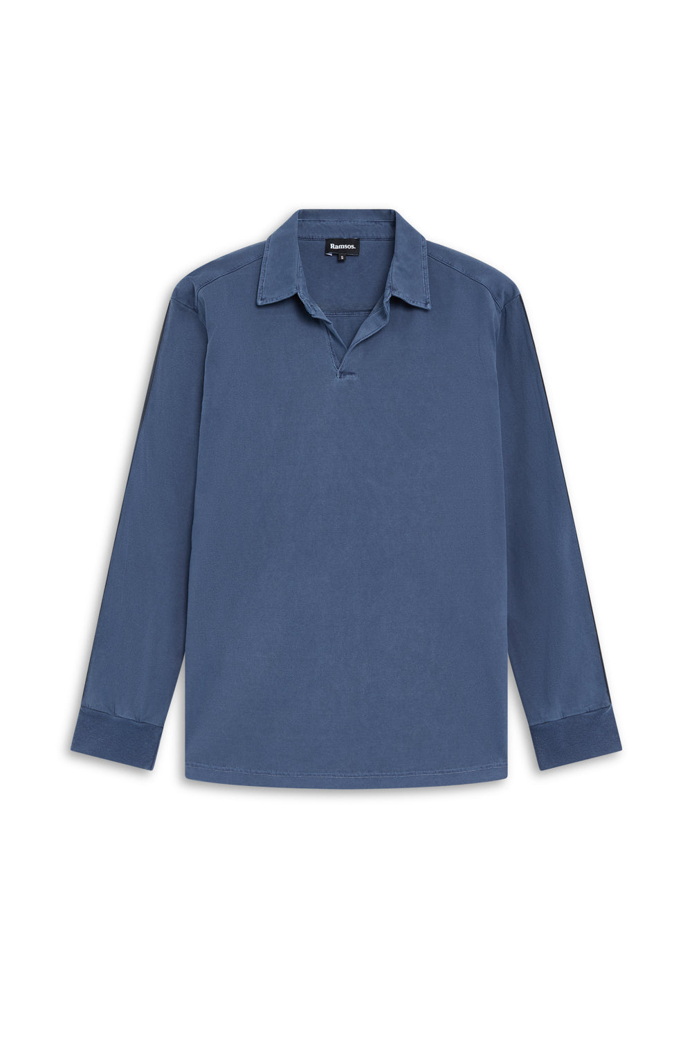 Men's polo in with stripe detail, featuring a clean, buttonless design.