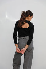 Burgundy long sleeve t-shirt featuring a unique open back detail.