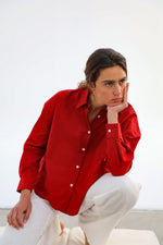 Modern burgundy button-down shirt crafted from soft cotton fabric.