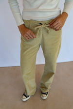 Straight-fit corduroy pants navy with tie detail at the waist.