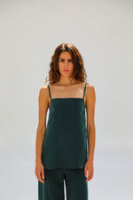 Burgundy cupro-silk top with thin straps, a clean square neckline, and subtle side slits at the hem for an elegant, modern silhouette. Complete the look with the Flow Cupro Pants Burgundy.
