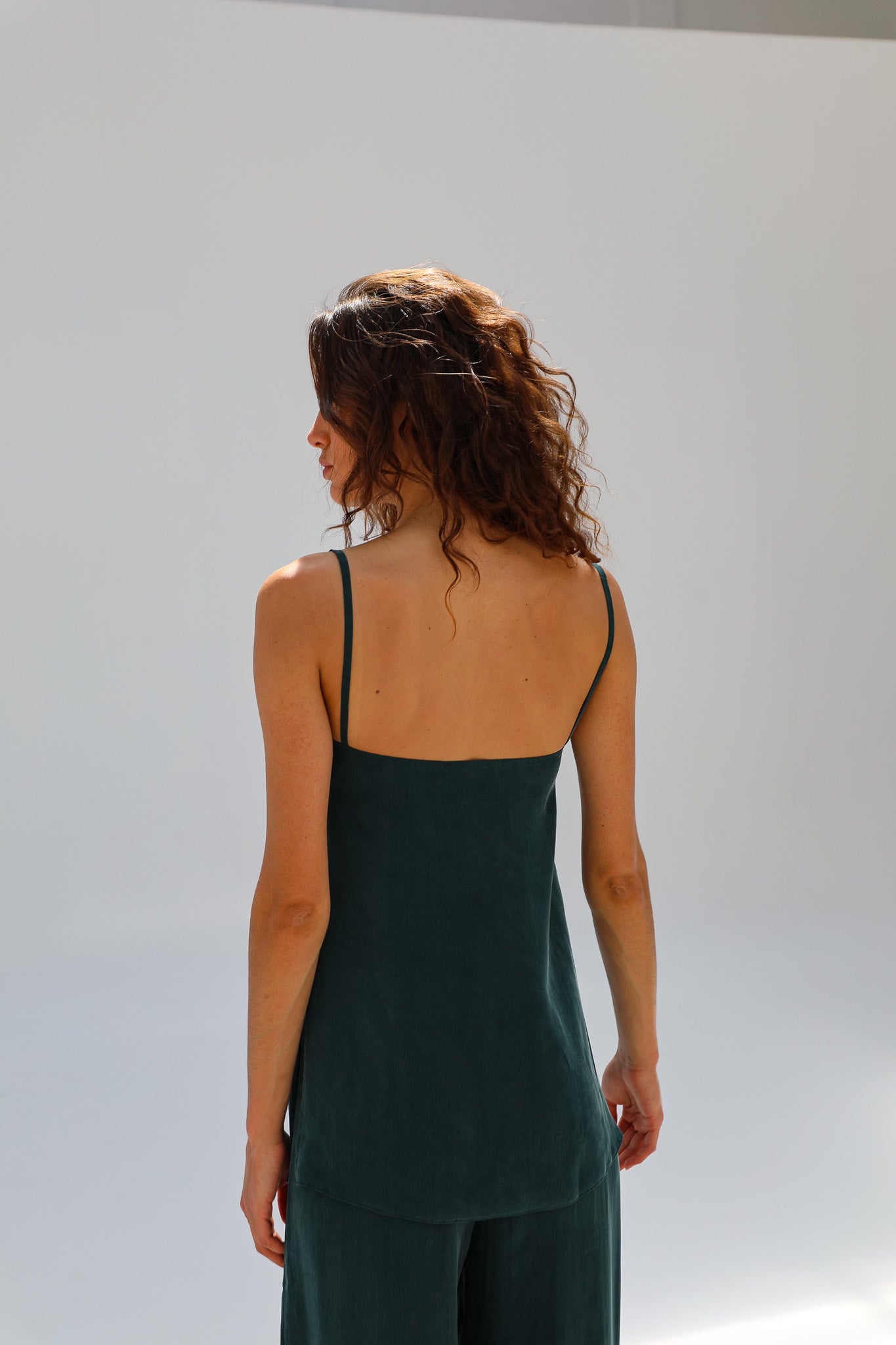 Thin Straps Cupro Silk Top Green