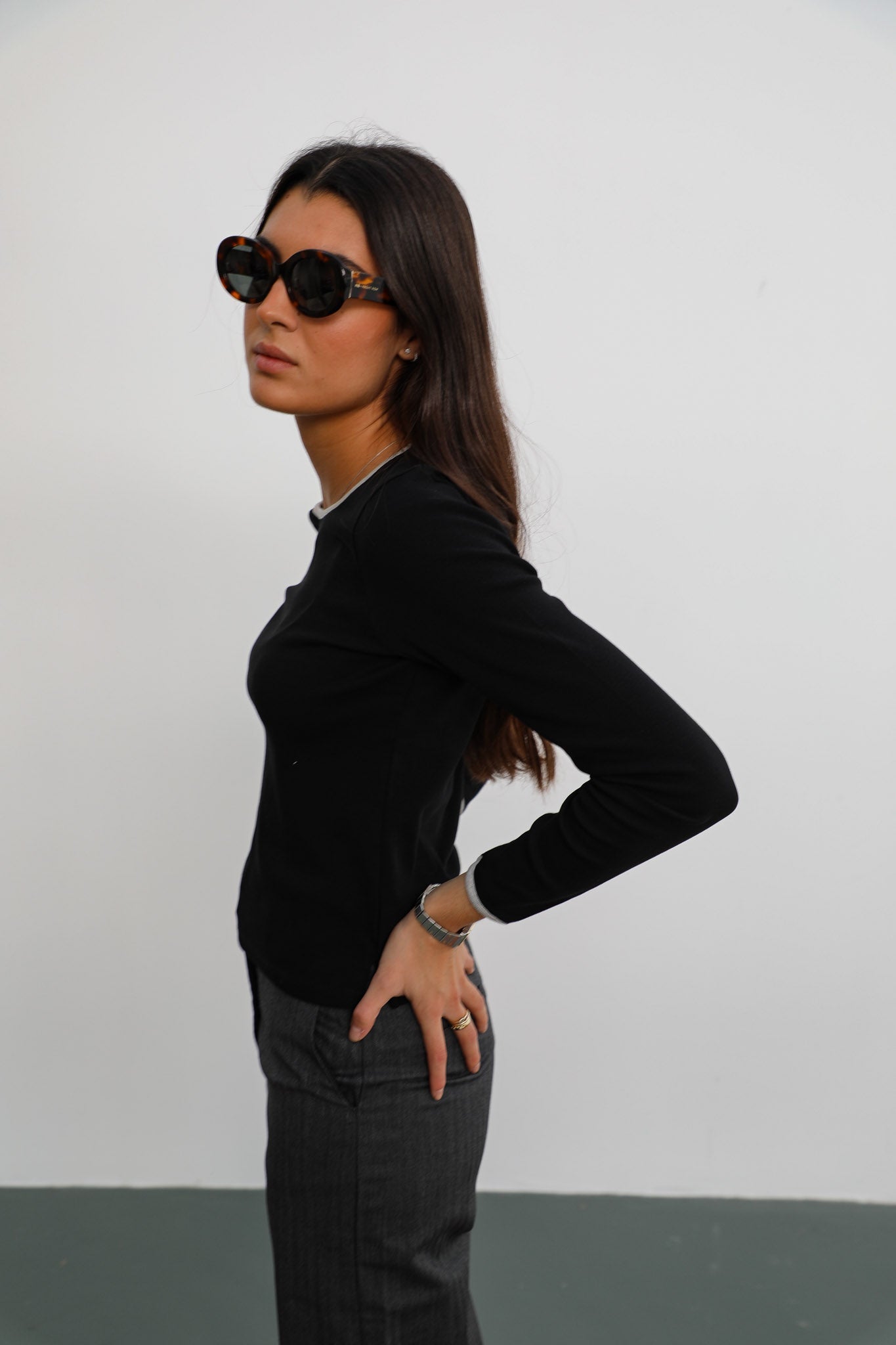 Our model is 1.75 m and wears size S.