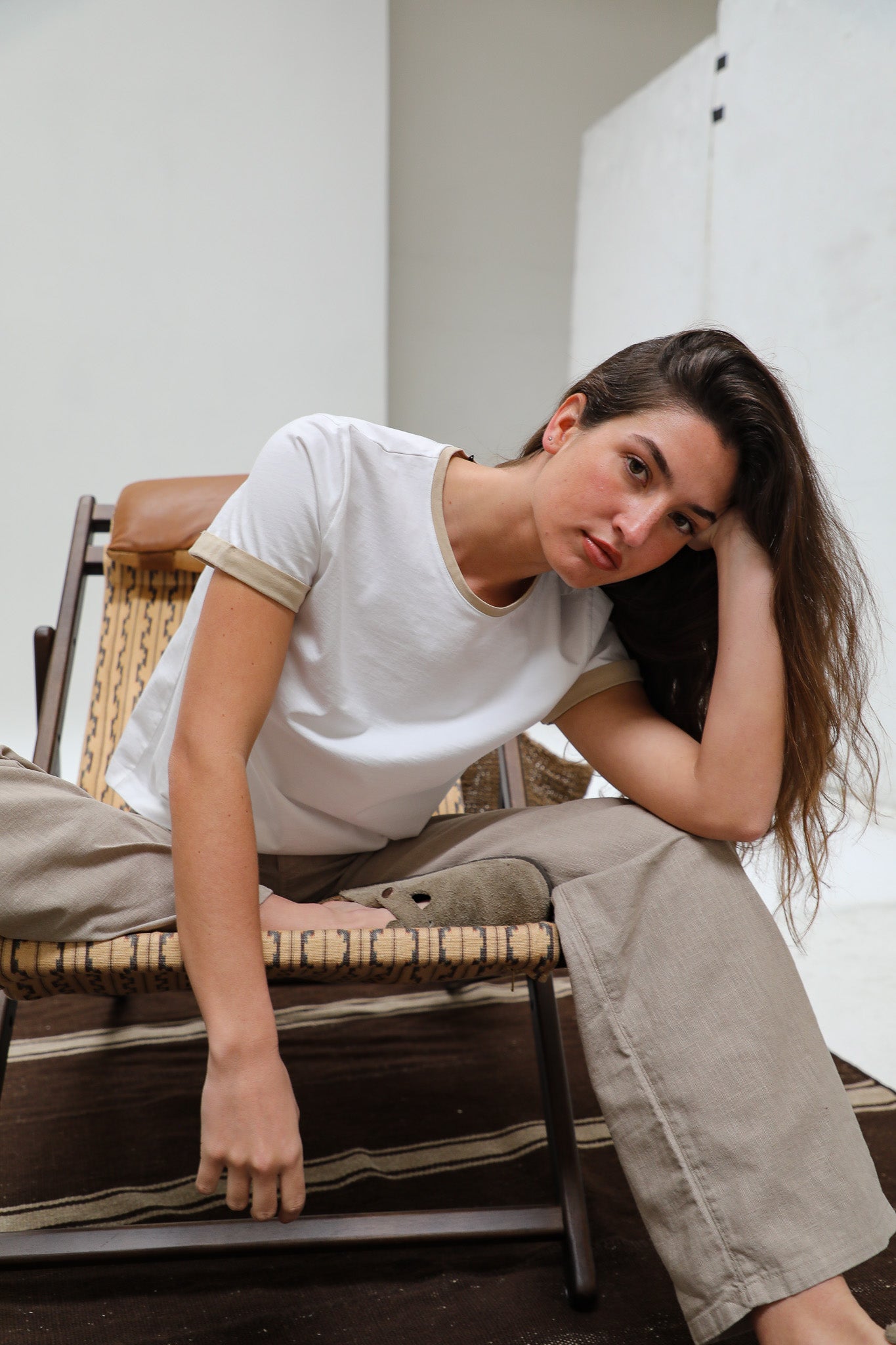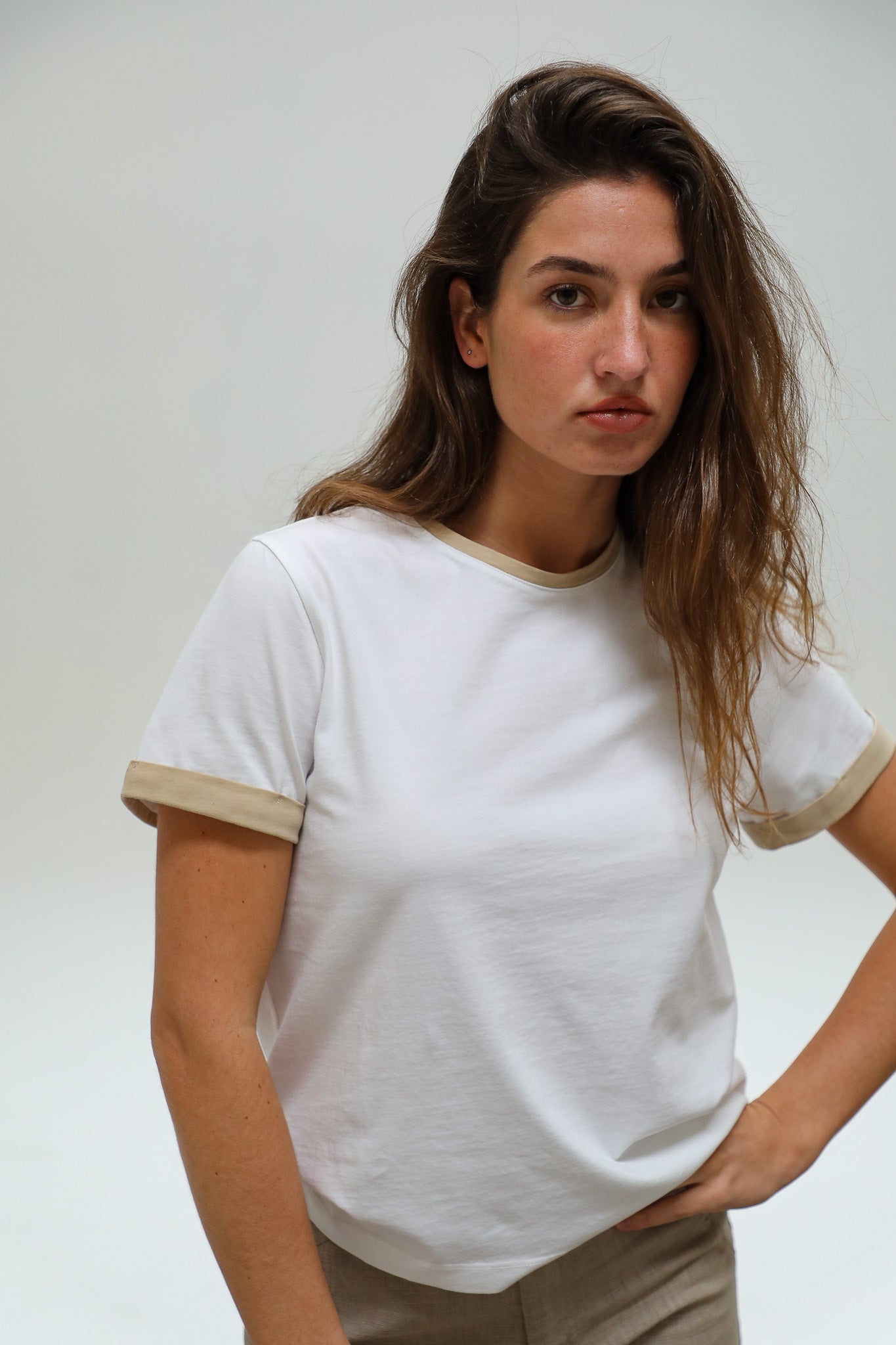 Short Ringer T-Shirt White & Beige
