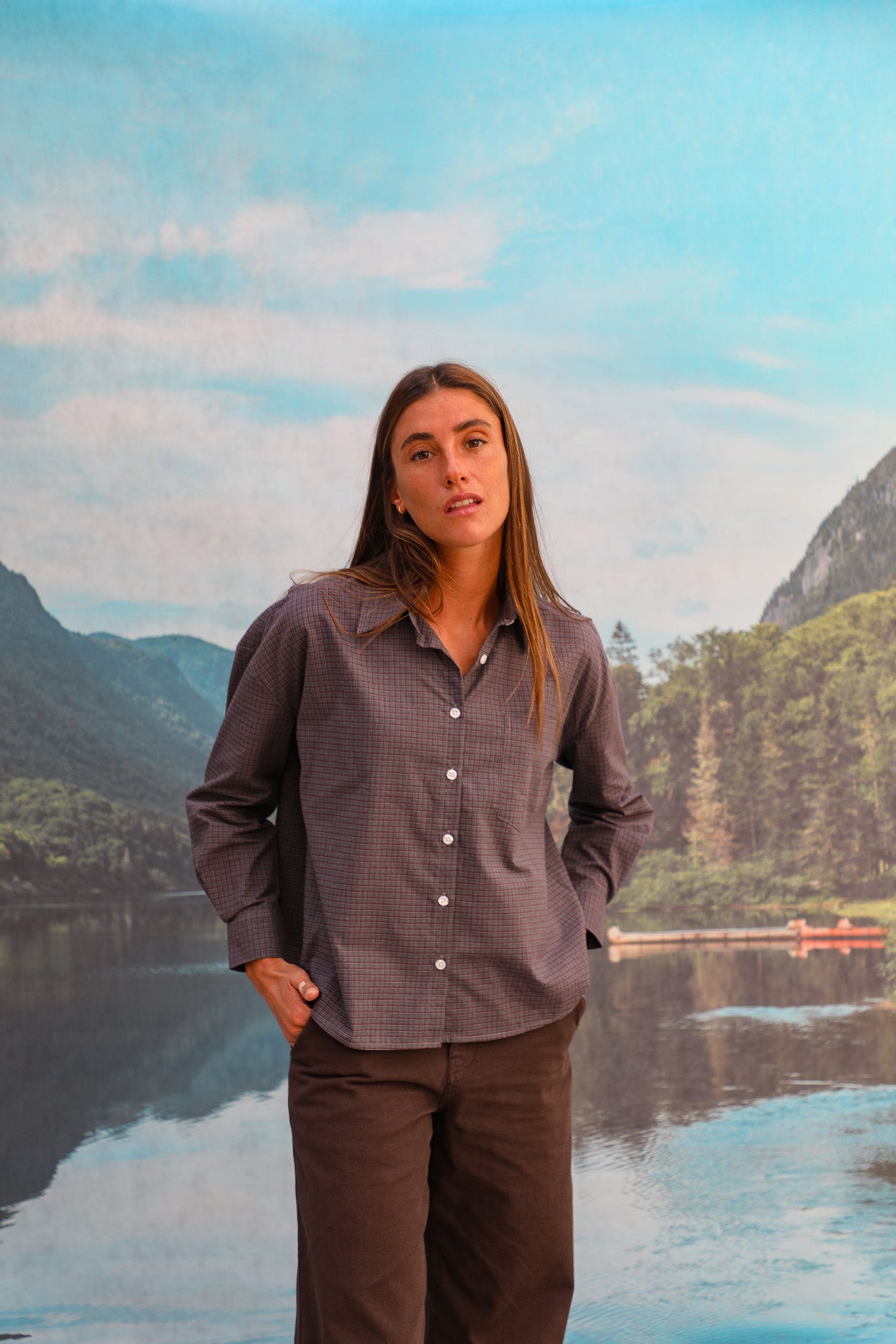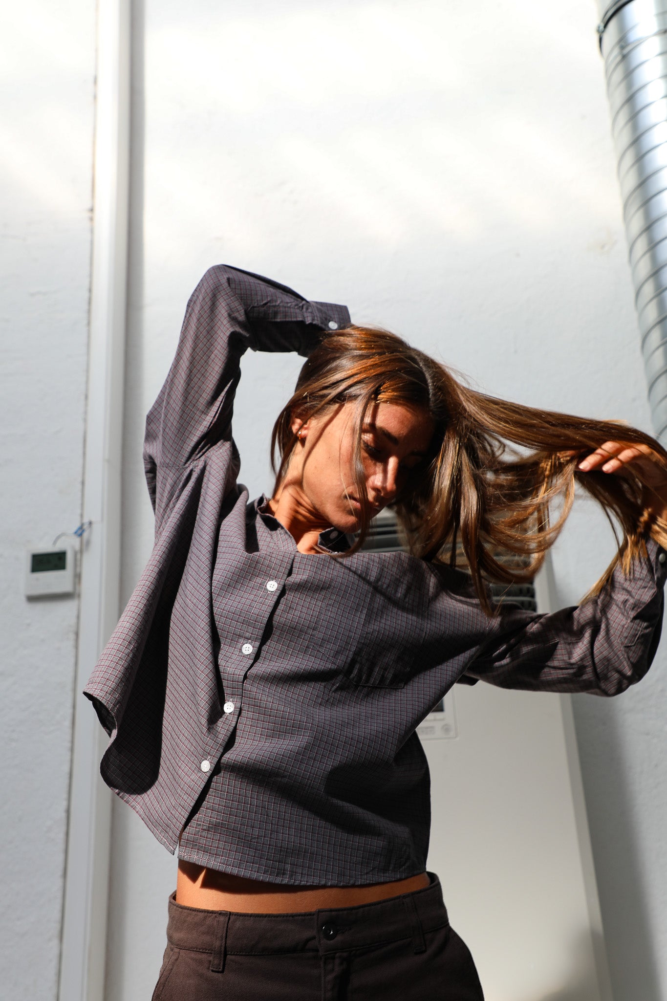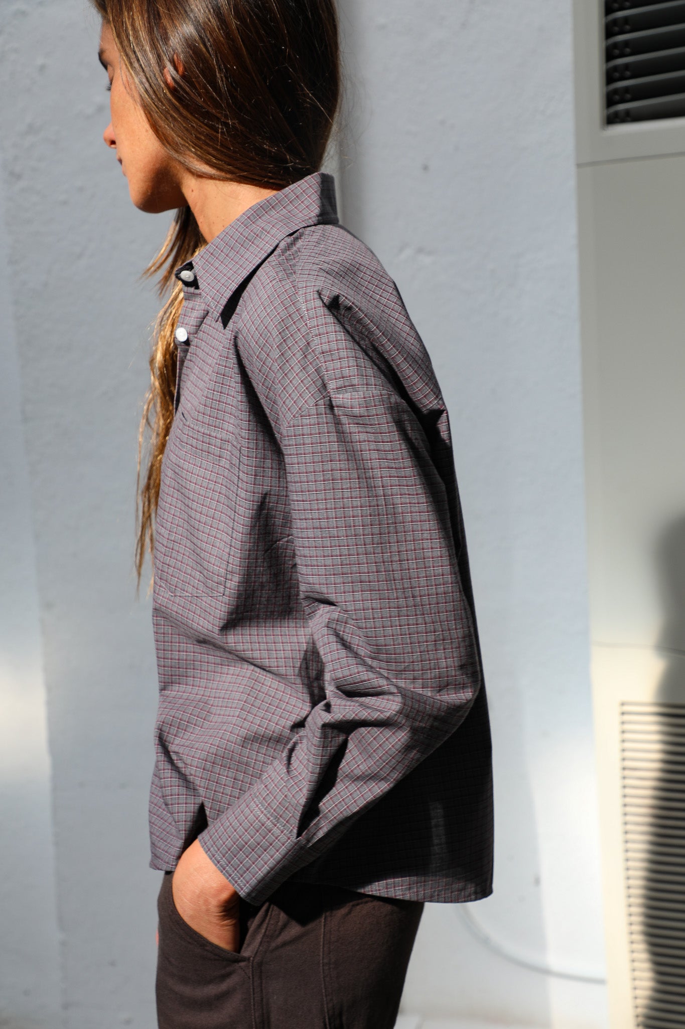 Modern burgundy button-down shirt crafted from soft cotton fabric.
