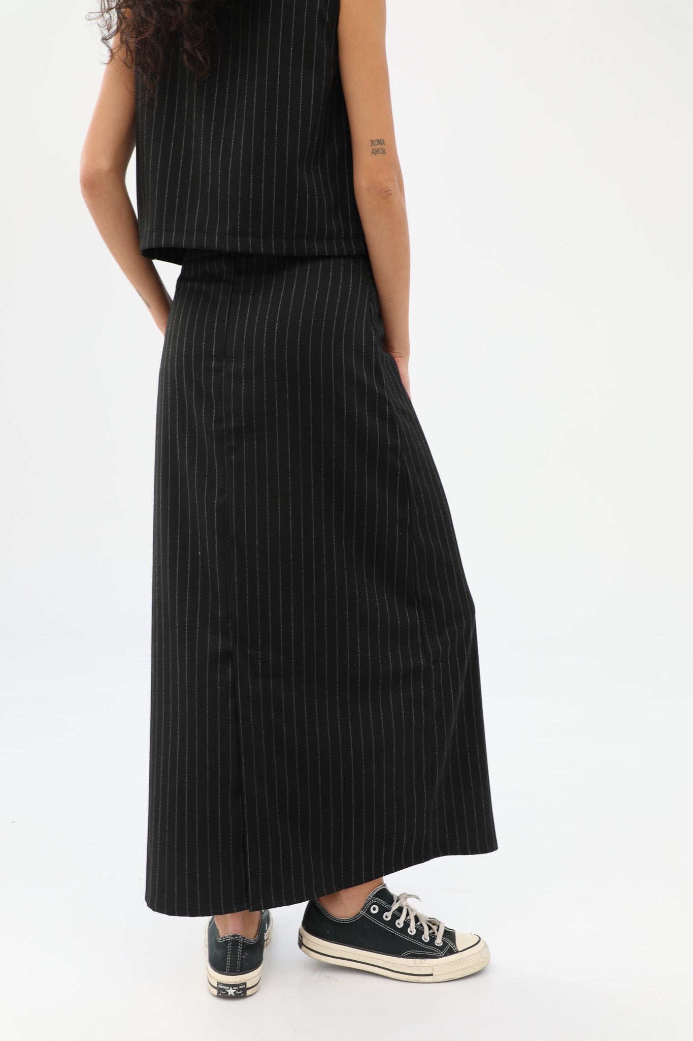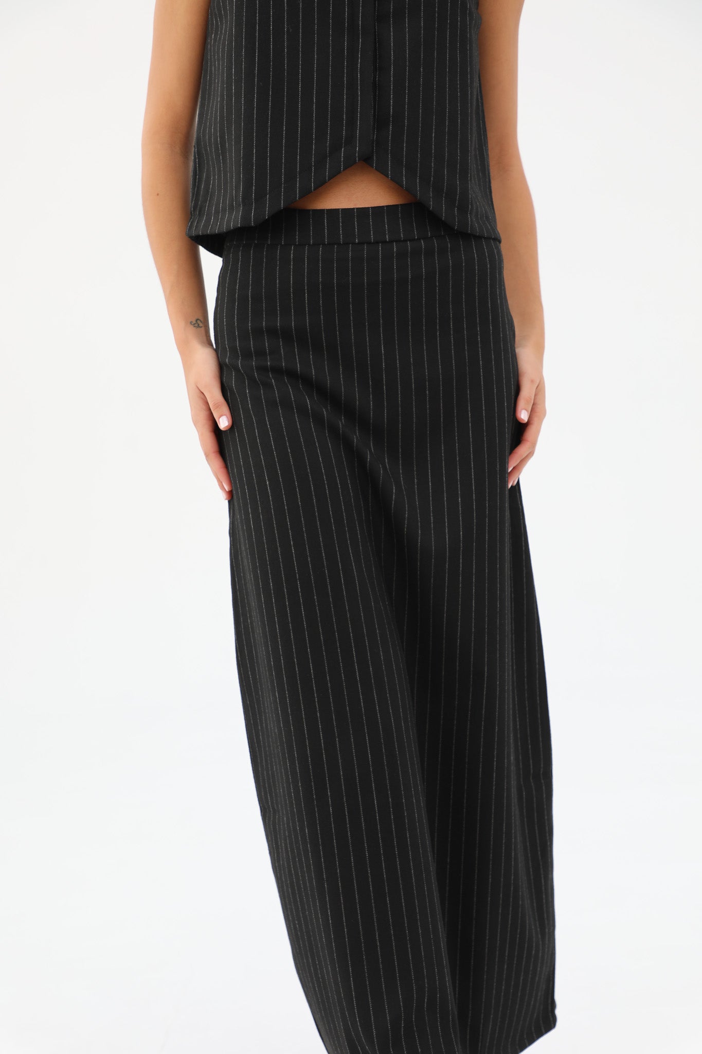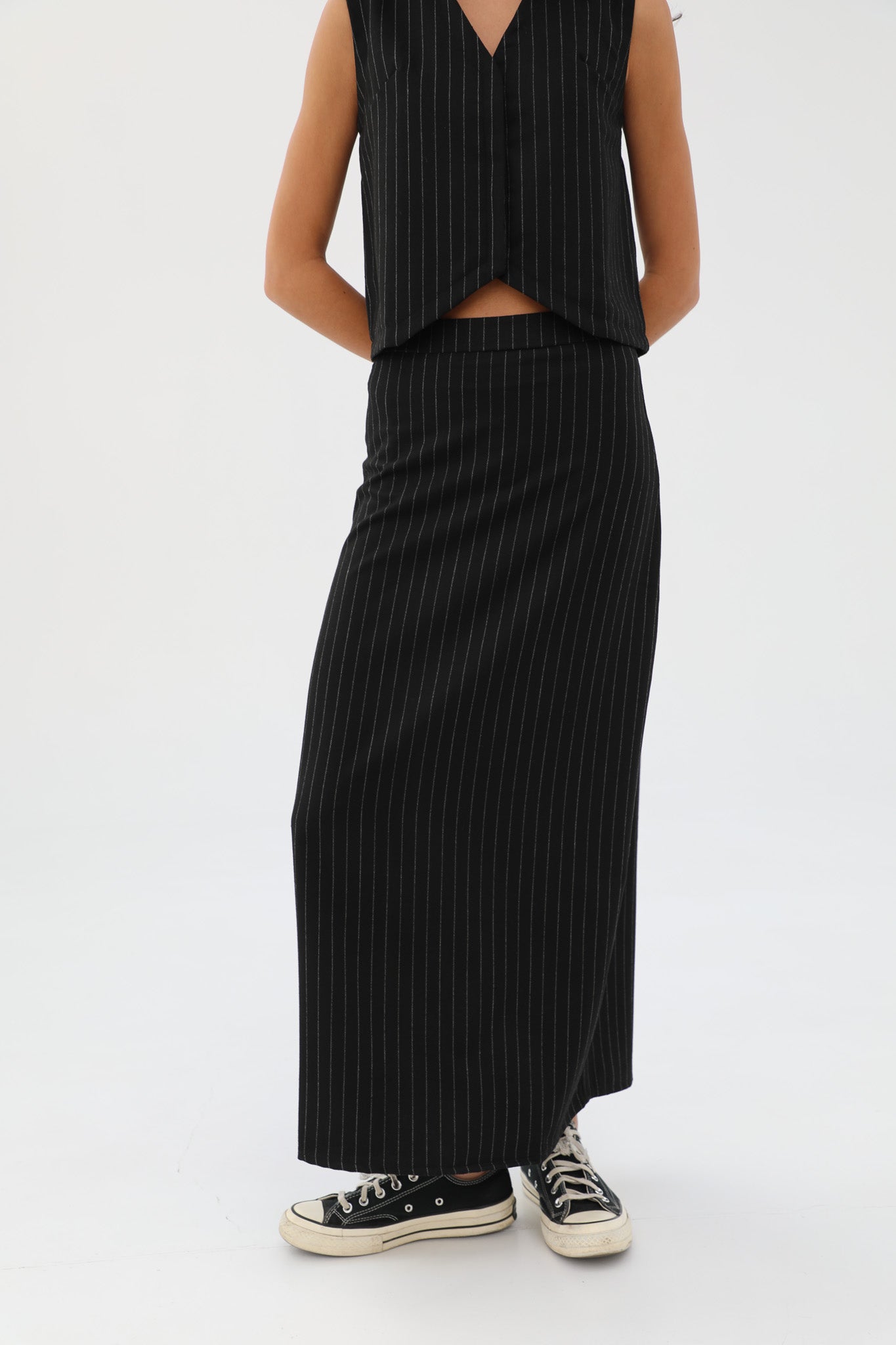 Diplomatic stripes skirt in black with grey stripes. Pair with our Diplomatic Stripes Vest Black & Grey to complete the look.