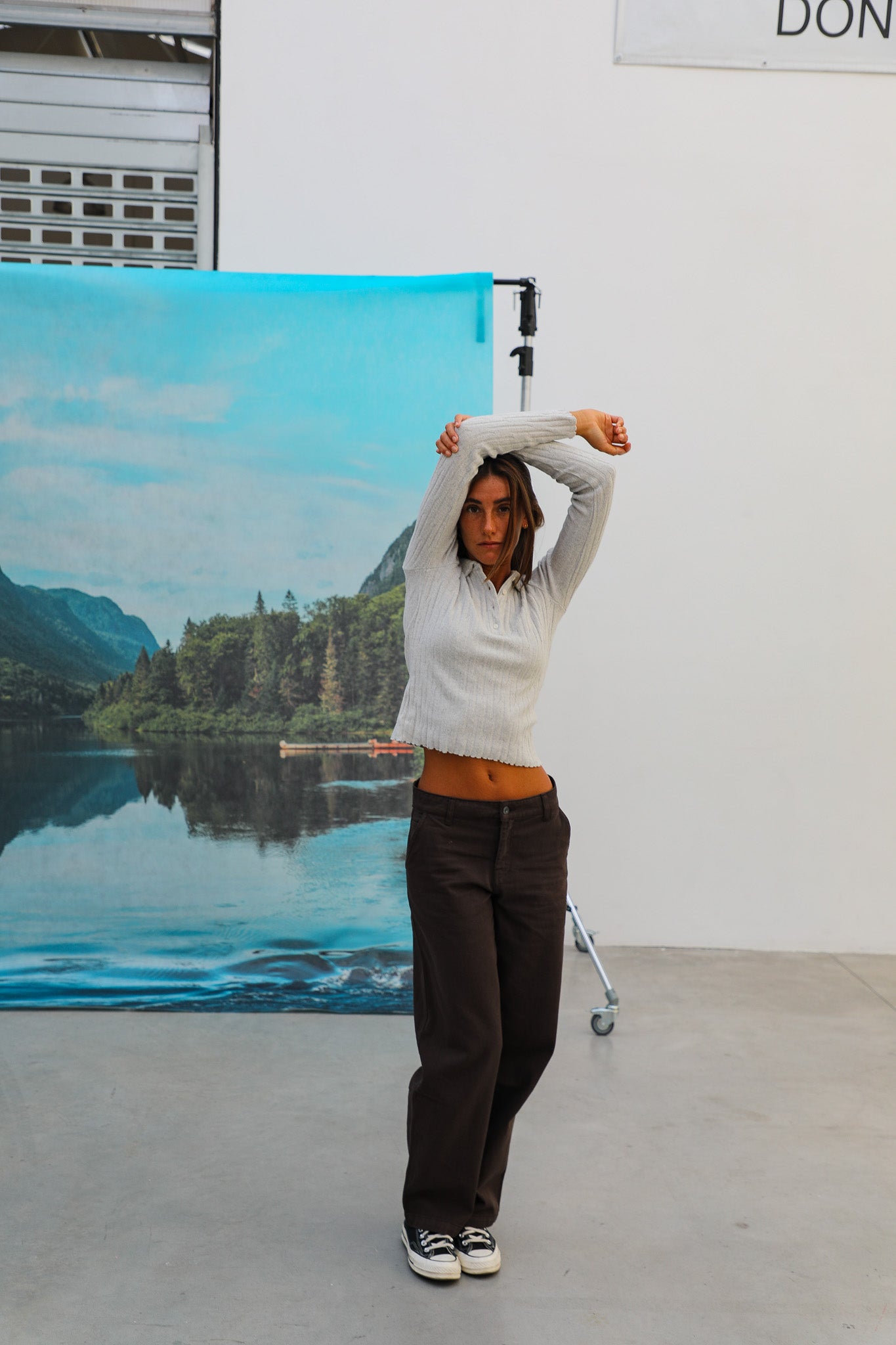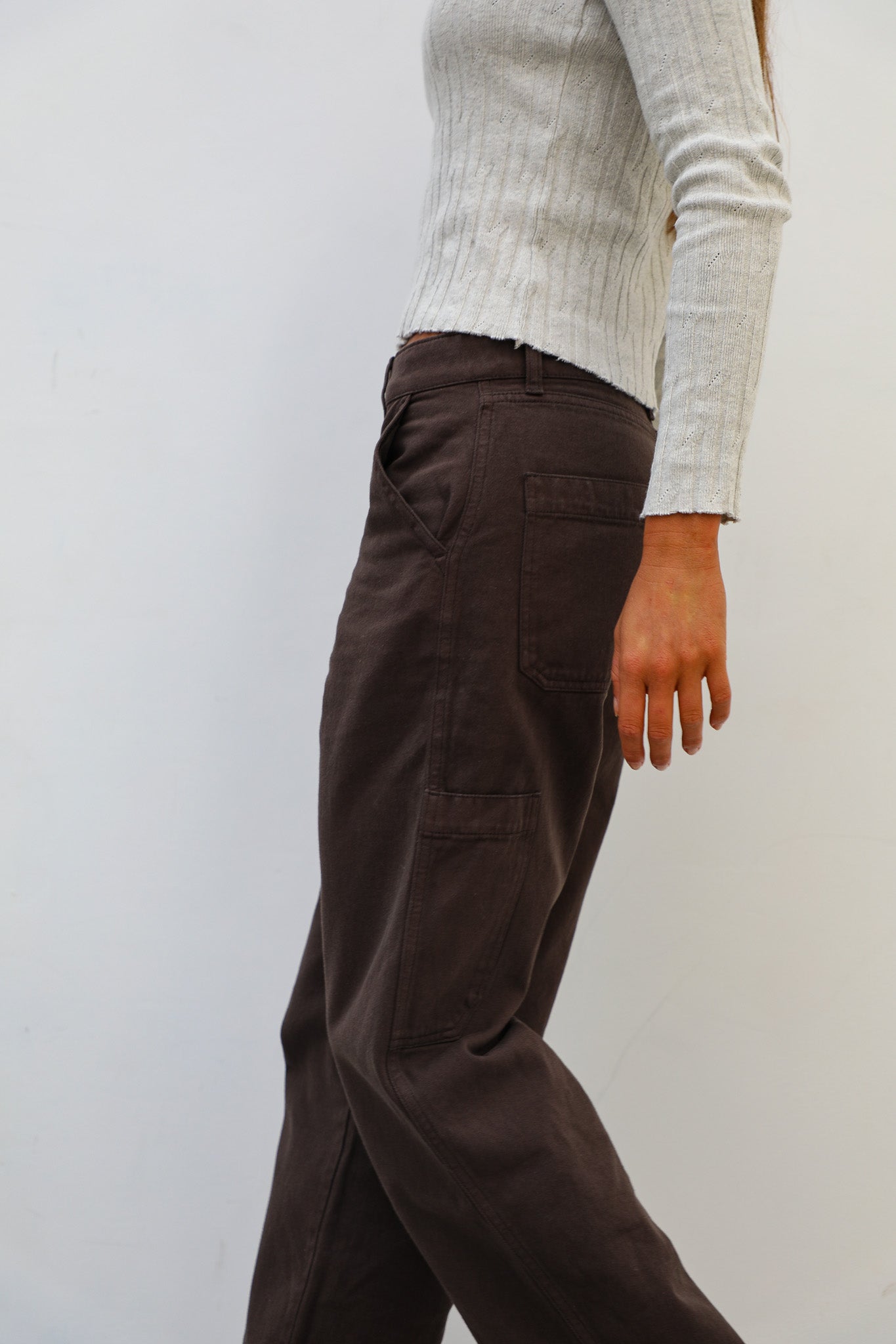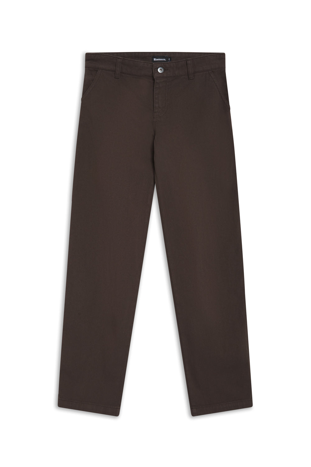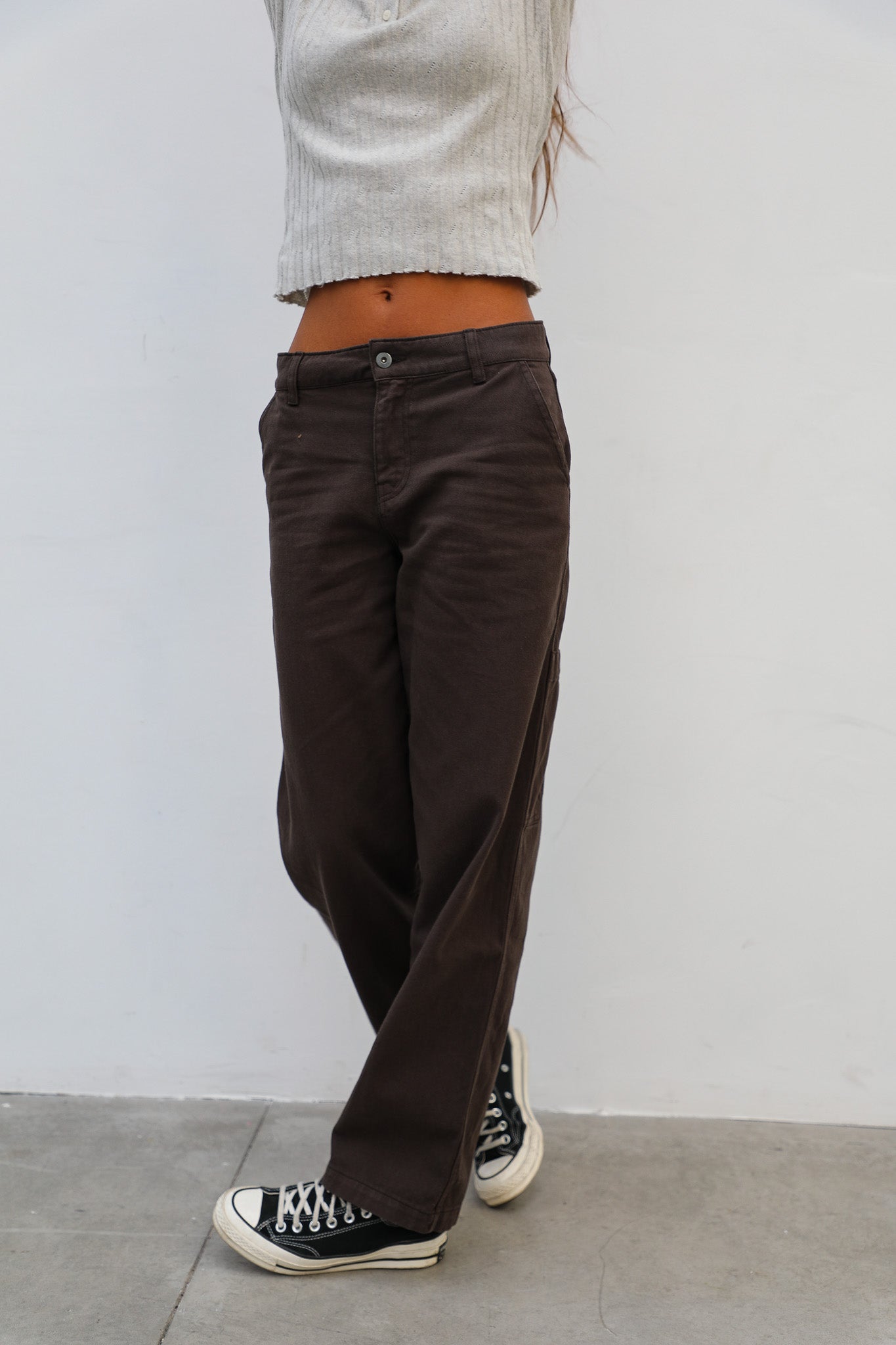 Our bestseller modern comfy pants in dark brown crafted for a modern and comfortable fit for women, with a classic button at waist and side pocket.