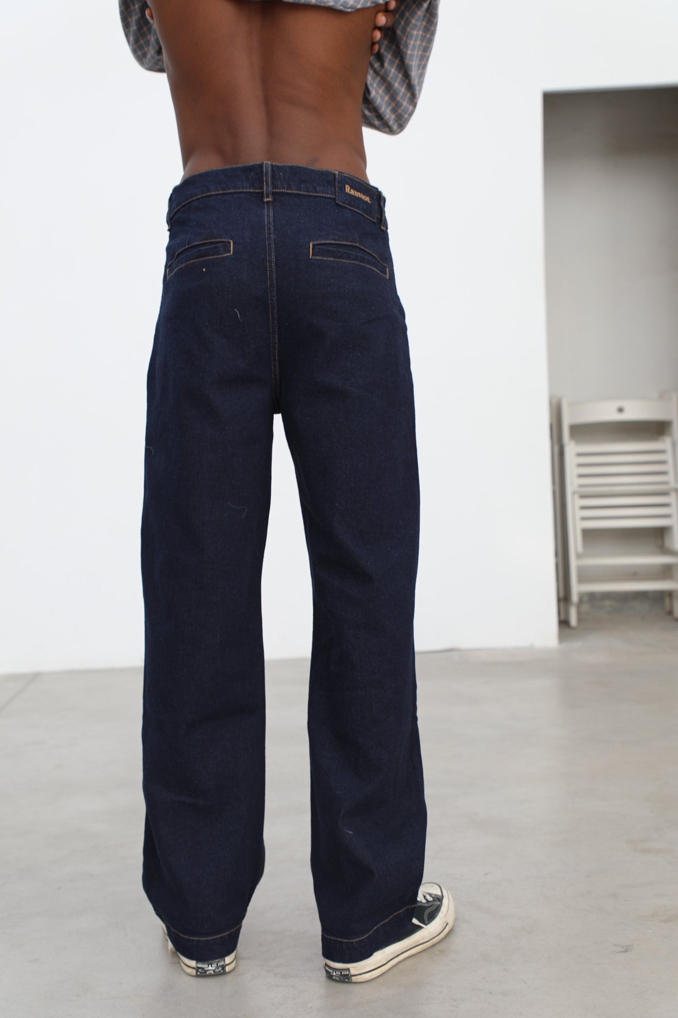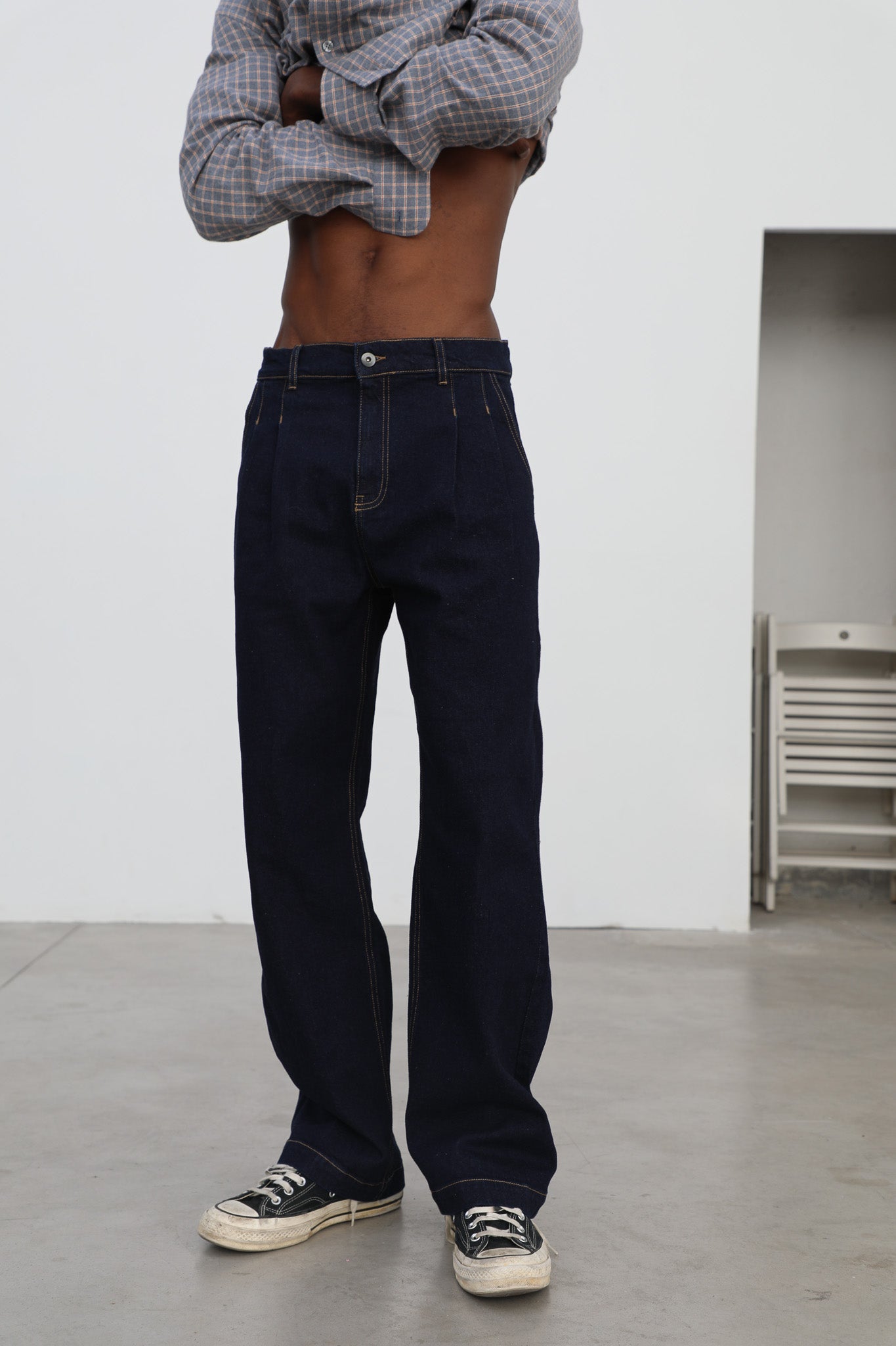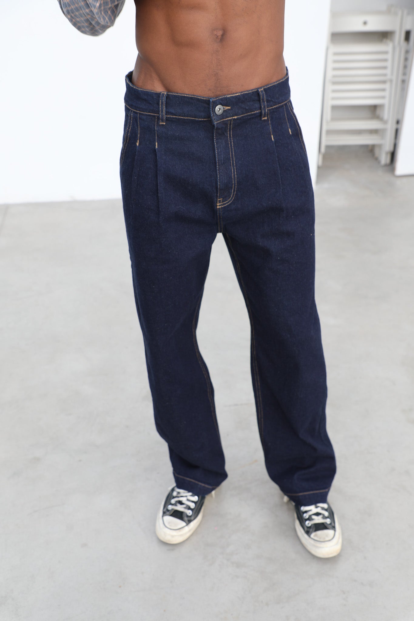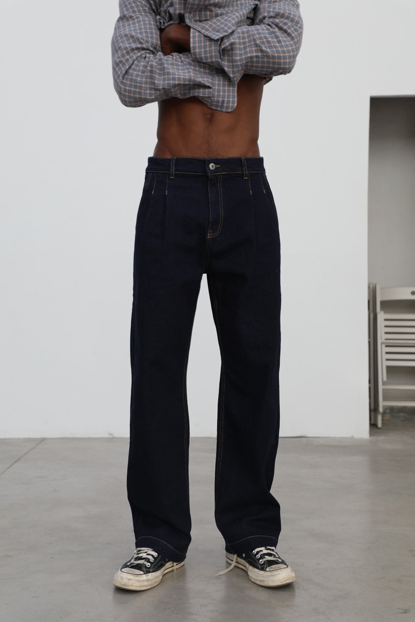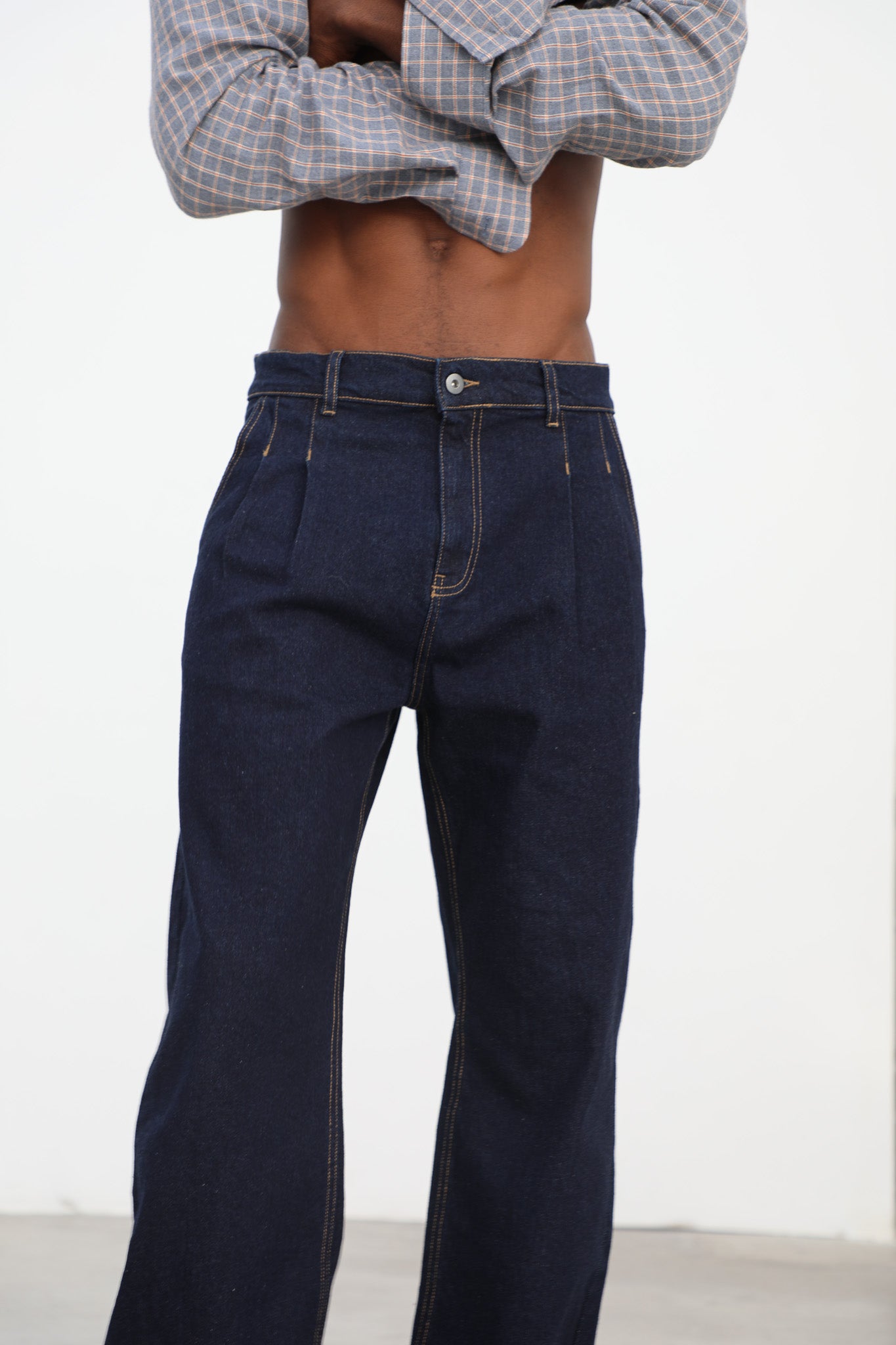 Pleated Dark Denim Jeans
