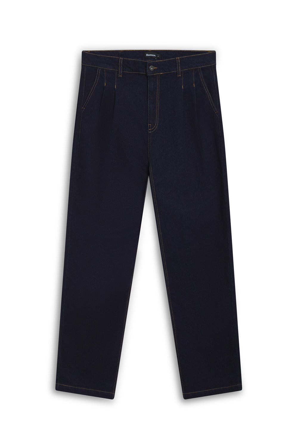 Tailored pleated jeans crafted from dark-wash denim.