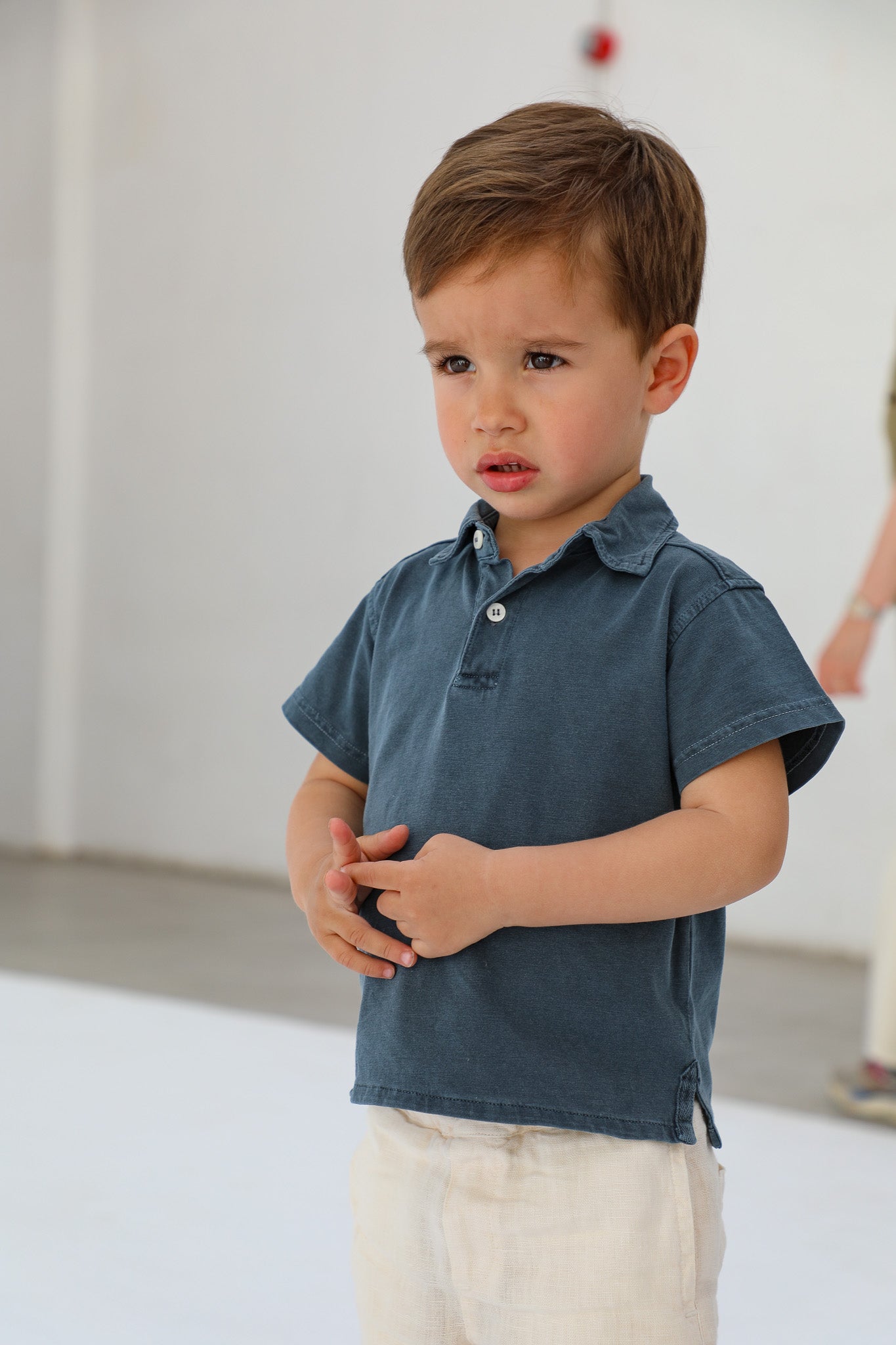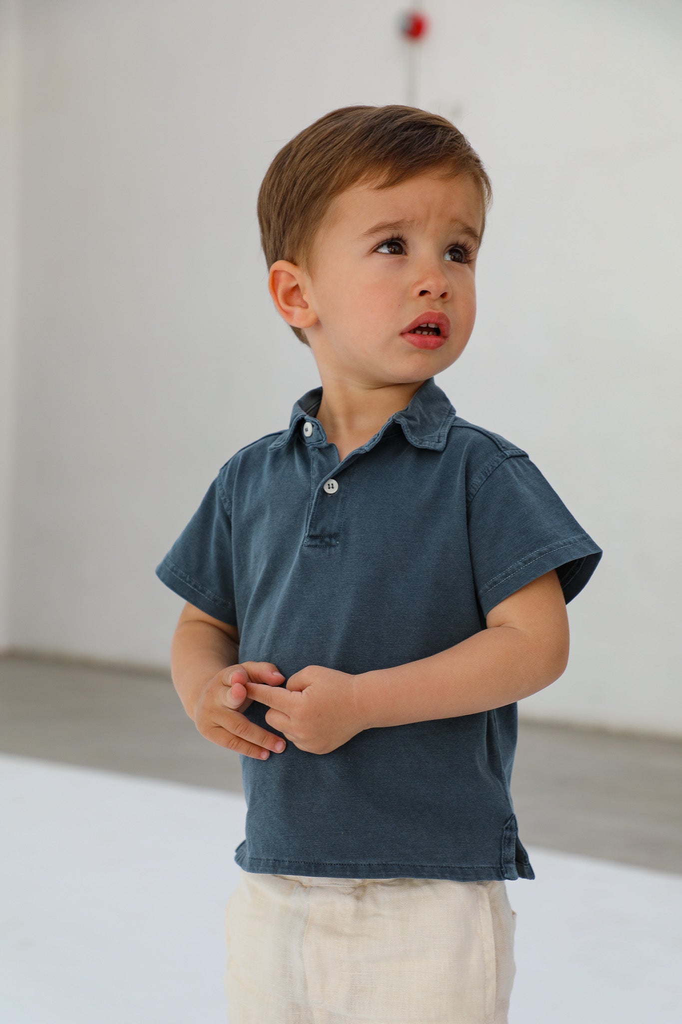 Petrol Ramsitos baby polo for ages 1-3, featuring short sleeves and a classic buttoned front.