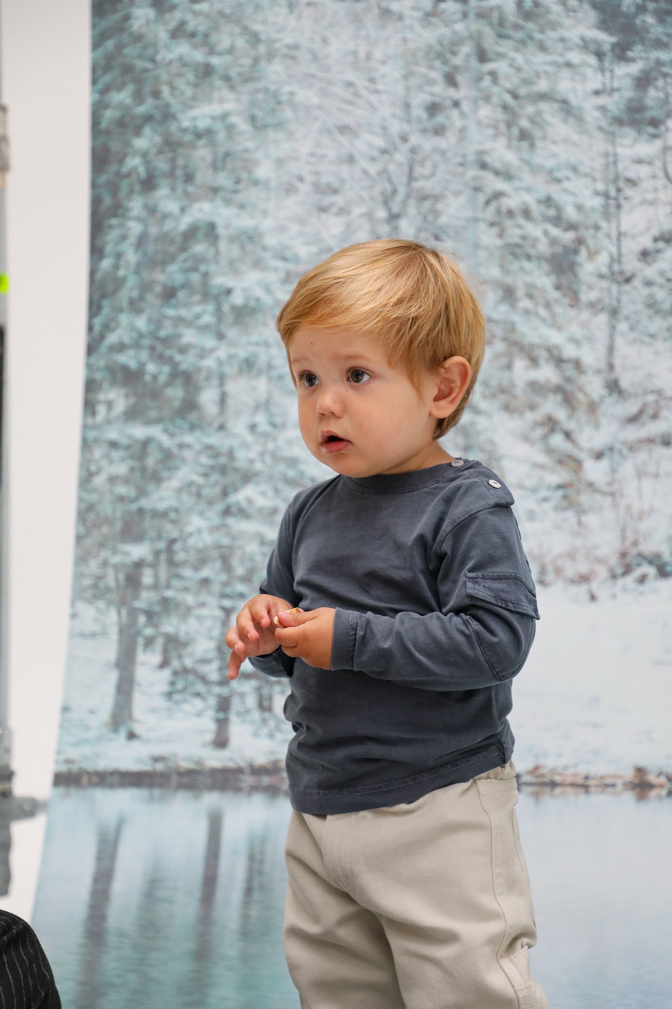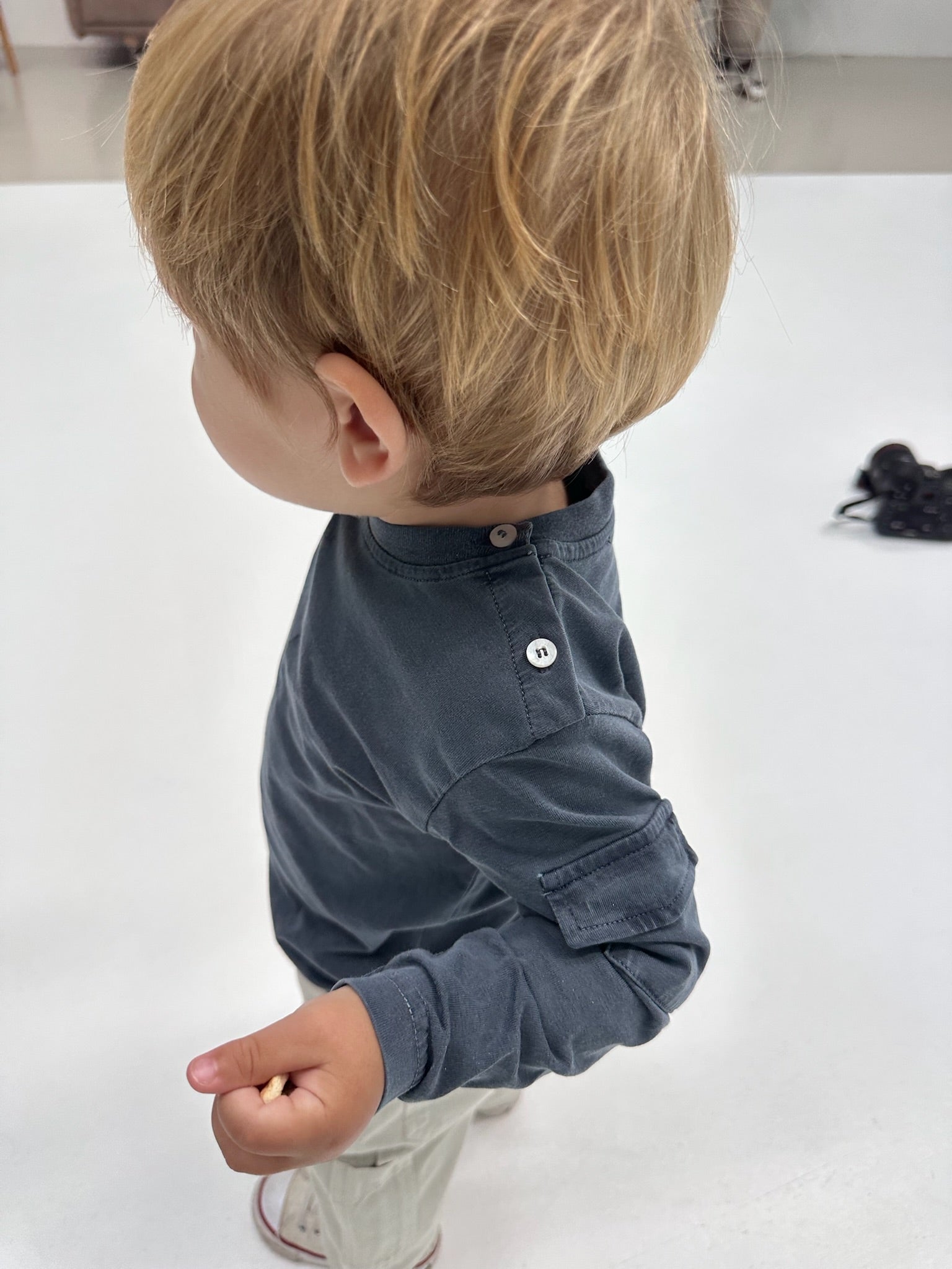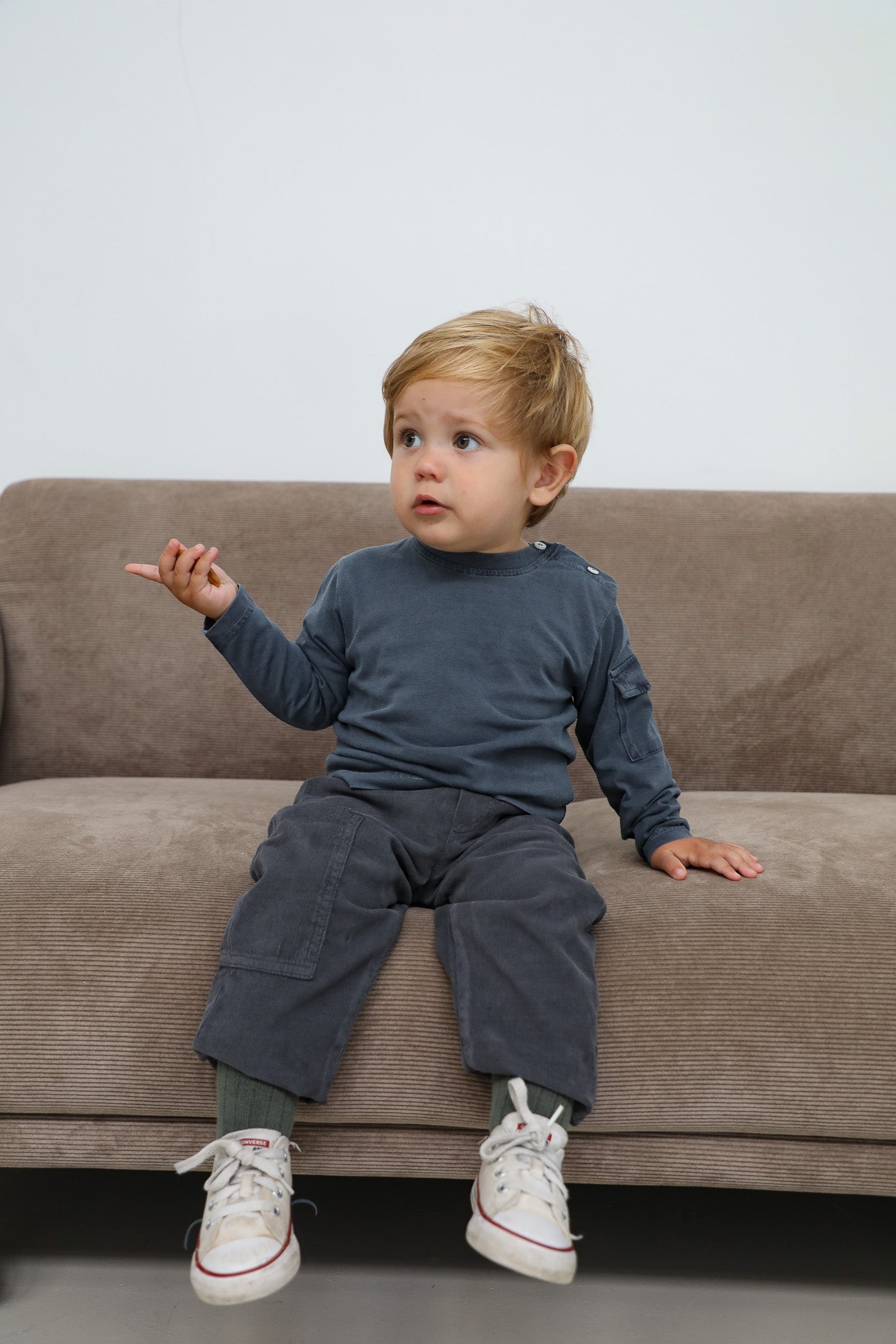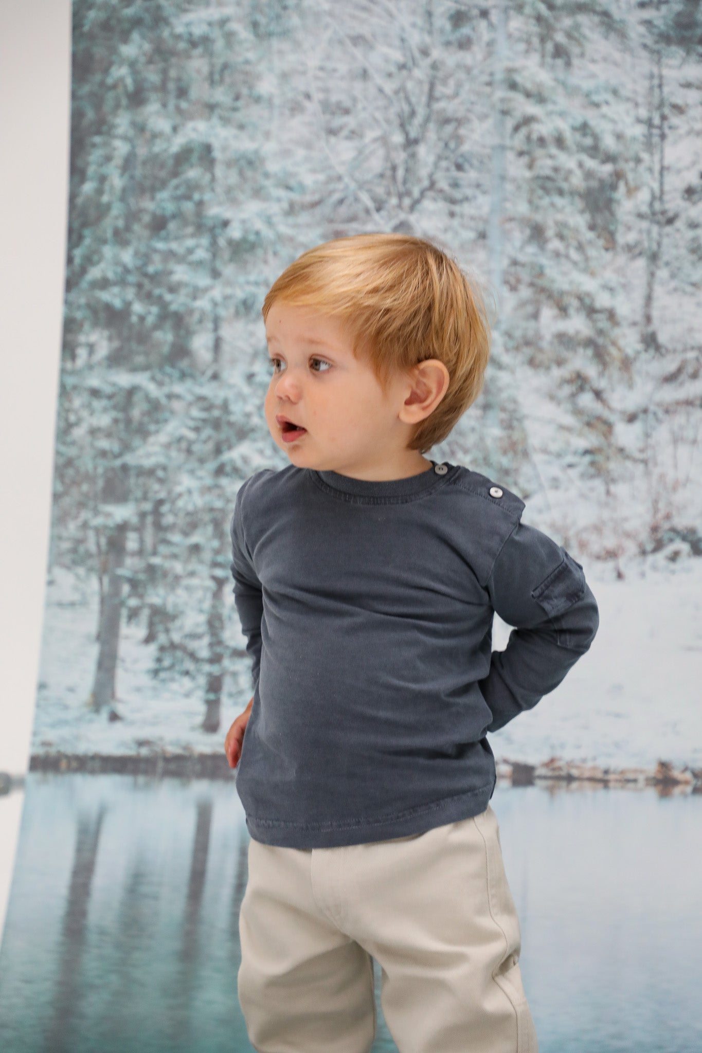 Dark navy Ramsitos t-shirt for ages 1-6, featuring long sleeves, a round neck and a sleeve pocket.