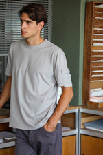 Upgrade your casual collection with our wide-fit men's t-shirt in a rich dark green hue, crafted from organic cotton fabric for ultimate comfort. Featuring short sleeves and stylish flap pockets on the left arm, this regular-length t-shirt effortlessly combines functionality with modern aesthetics.