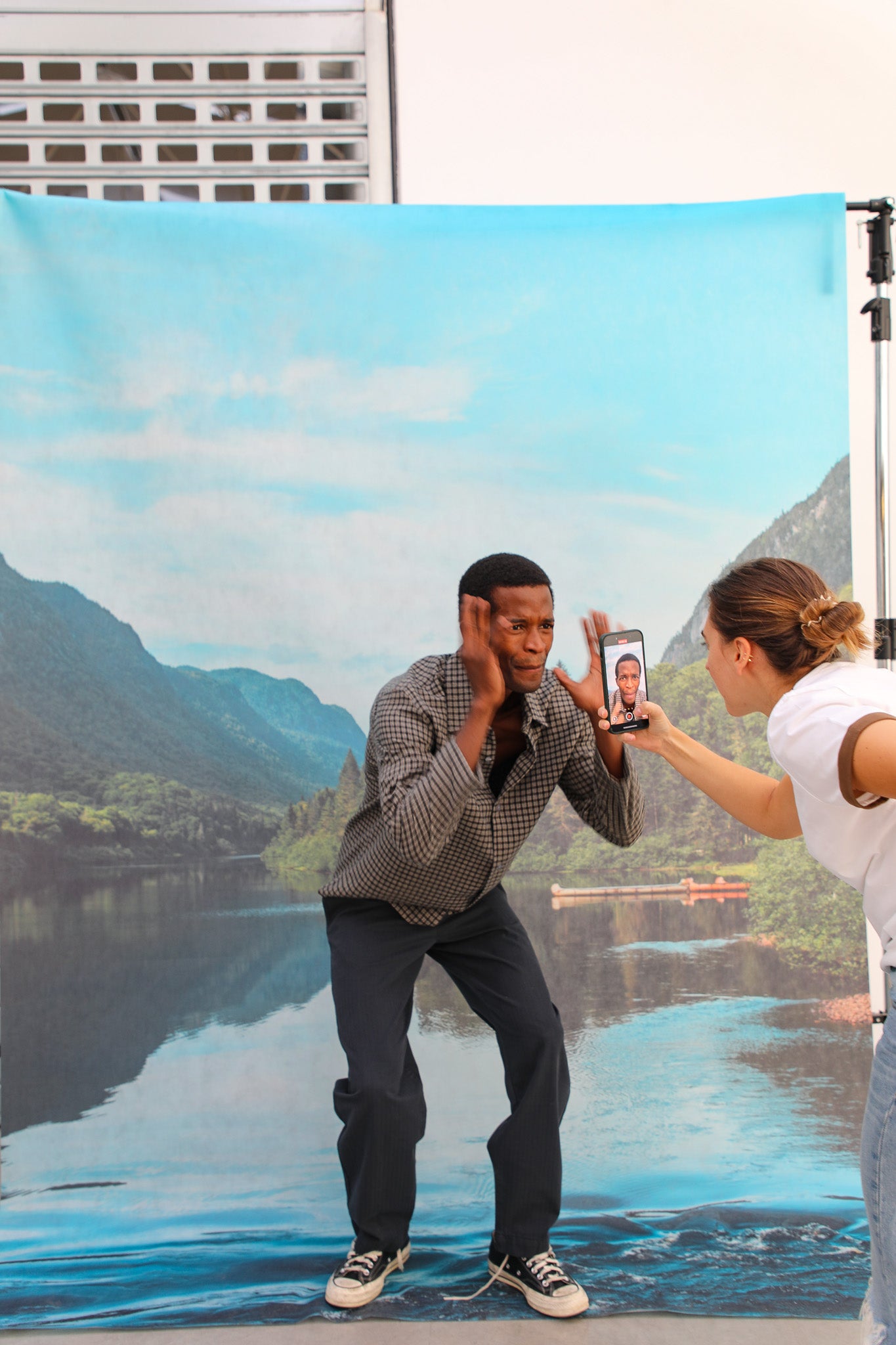 Grey and yellow button-down shirt featuring a subtle checkered pattern and cropped fit.